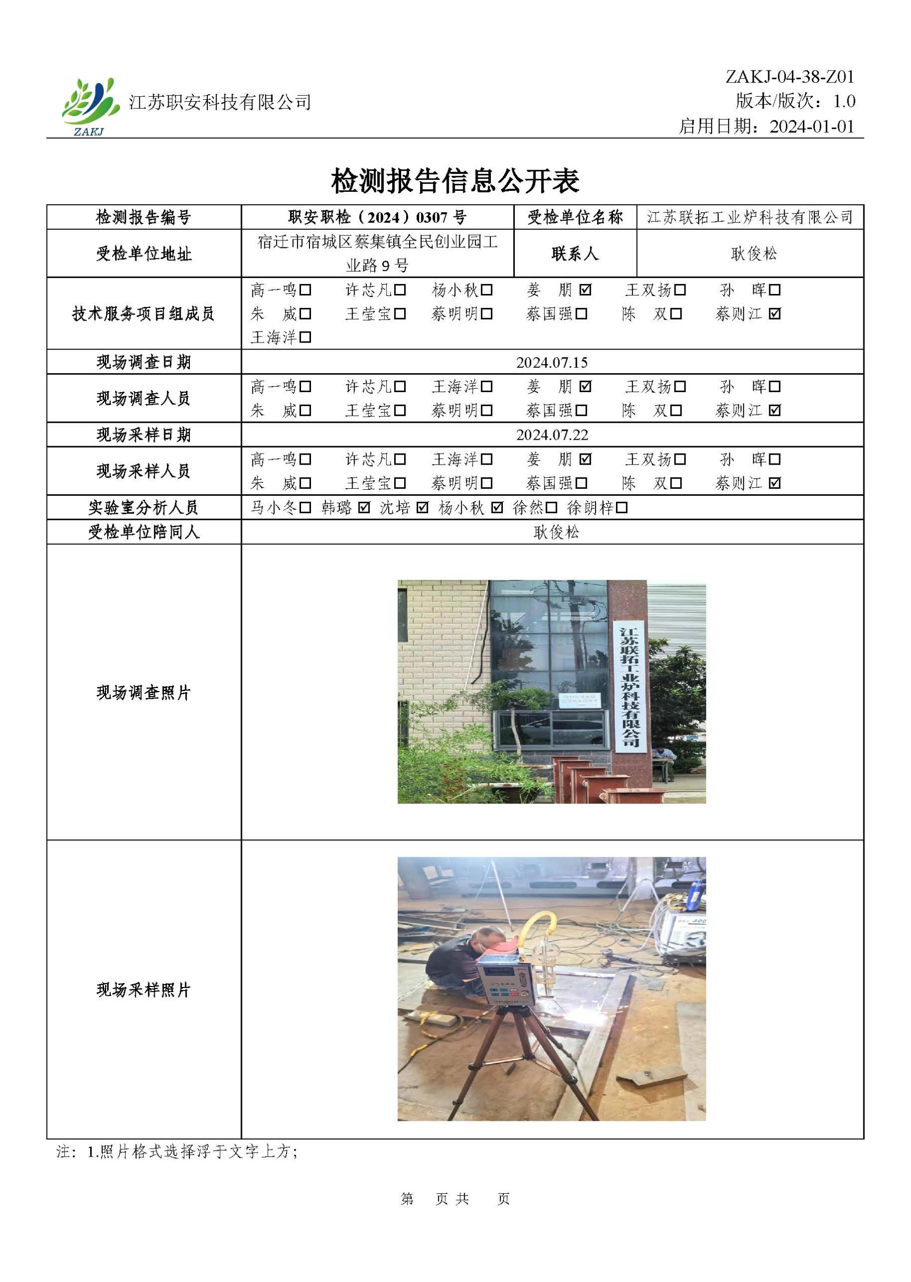 檢測報告公示