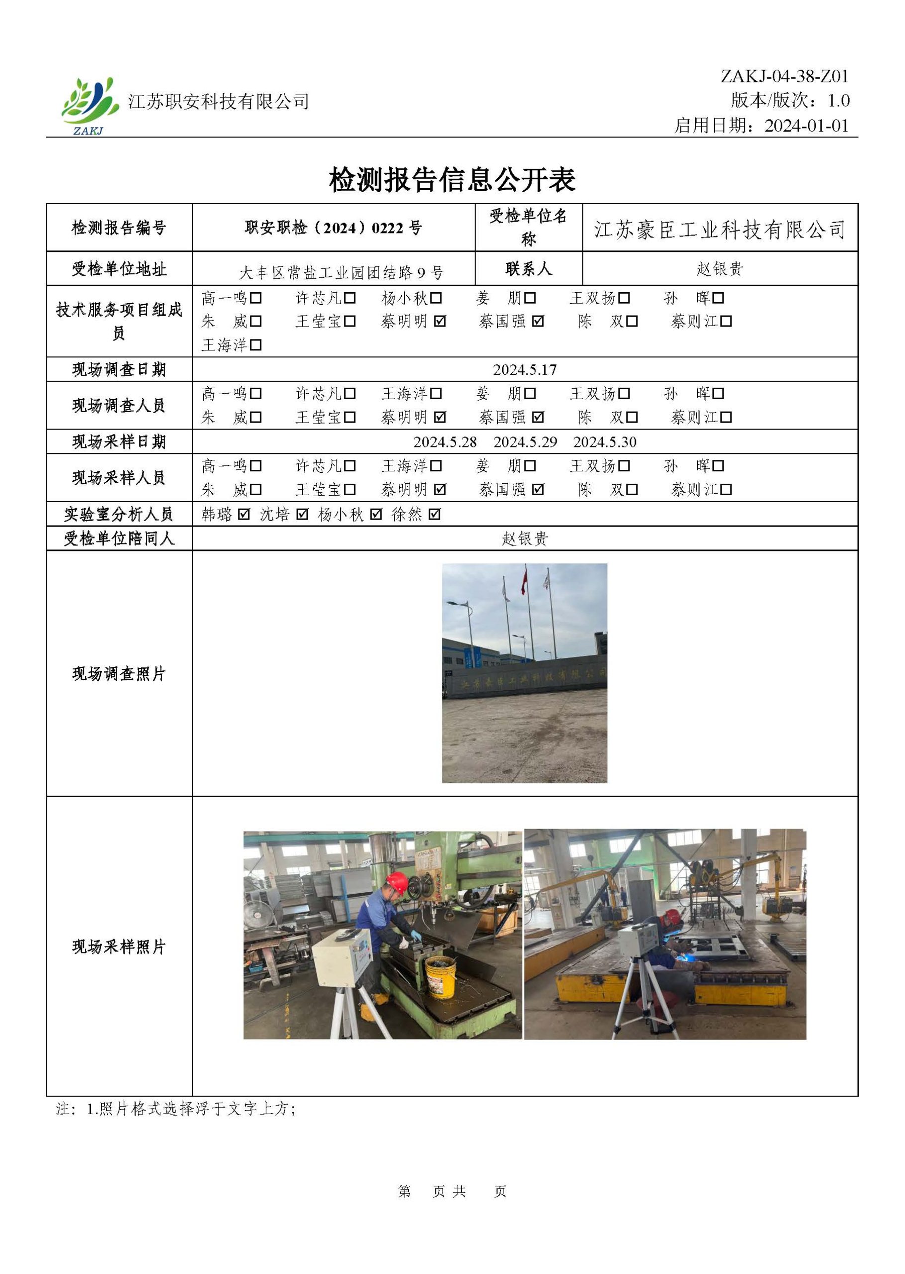檢測報告公示