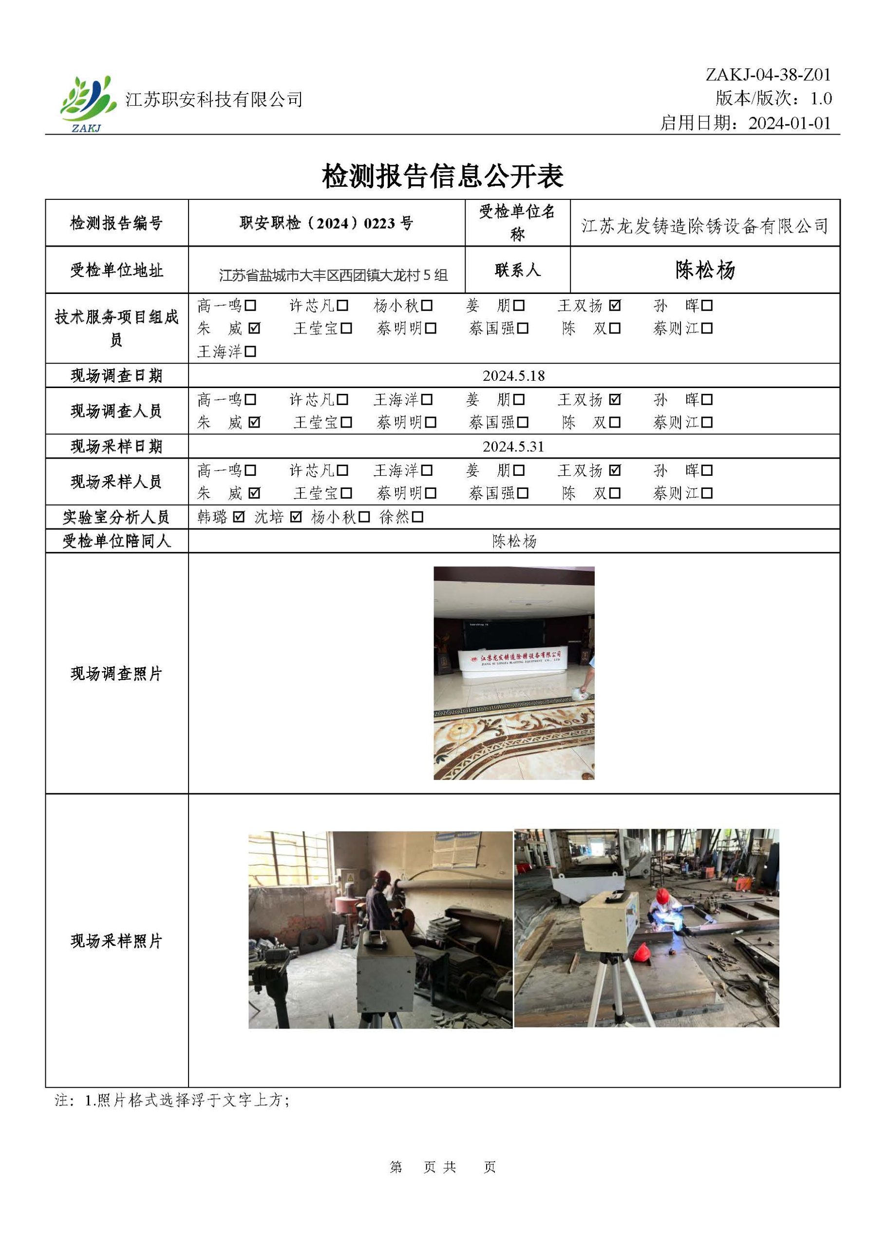 檢測報告公示