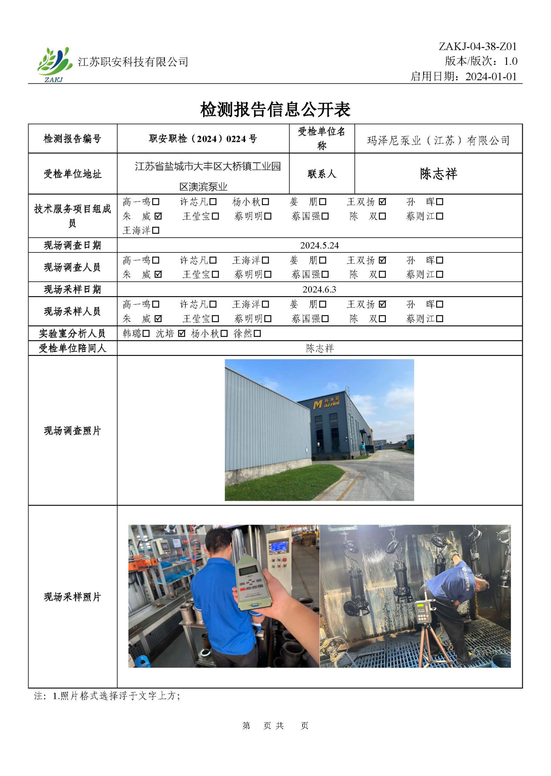 檢測報告公示