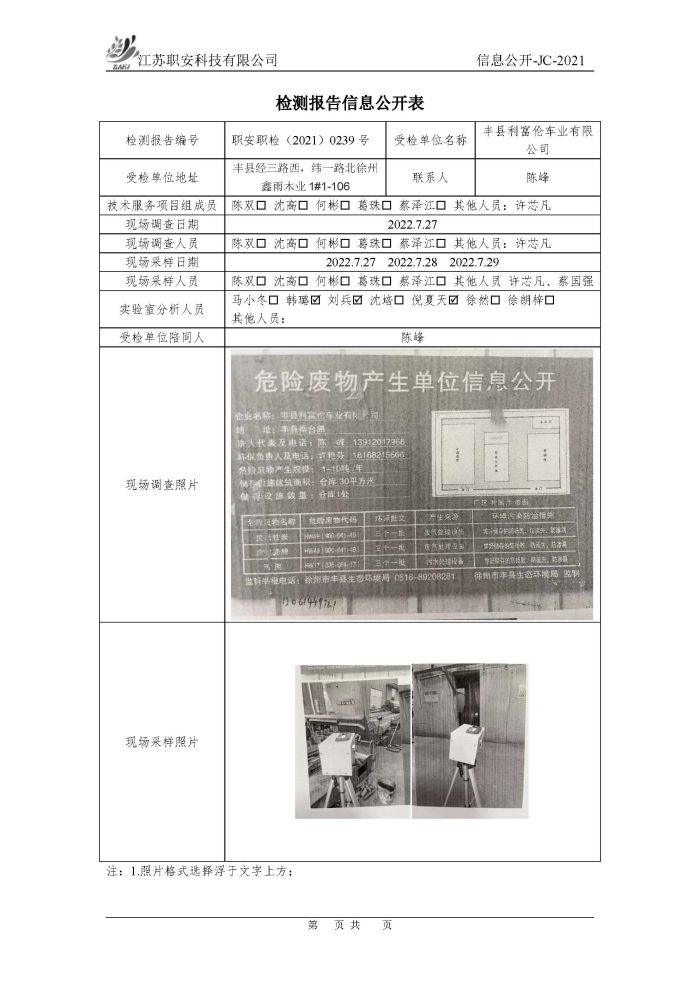 檢測報告公示