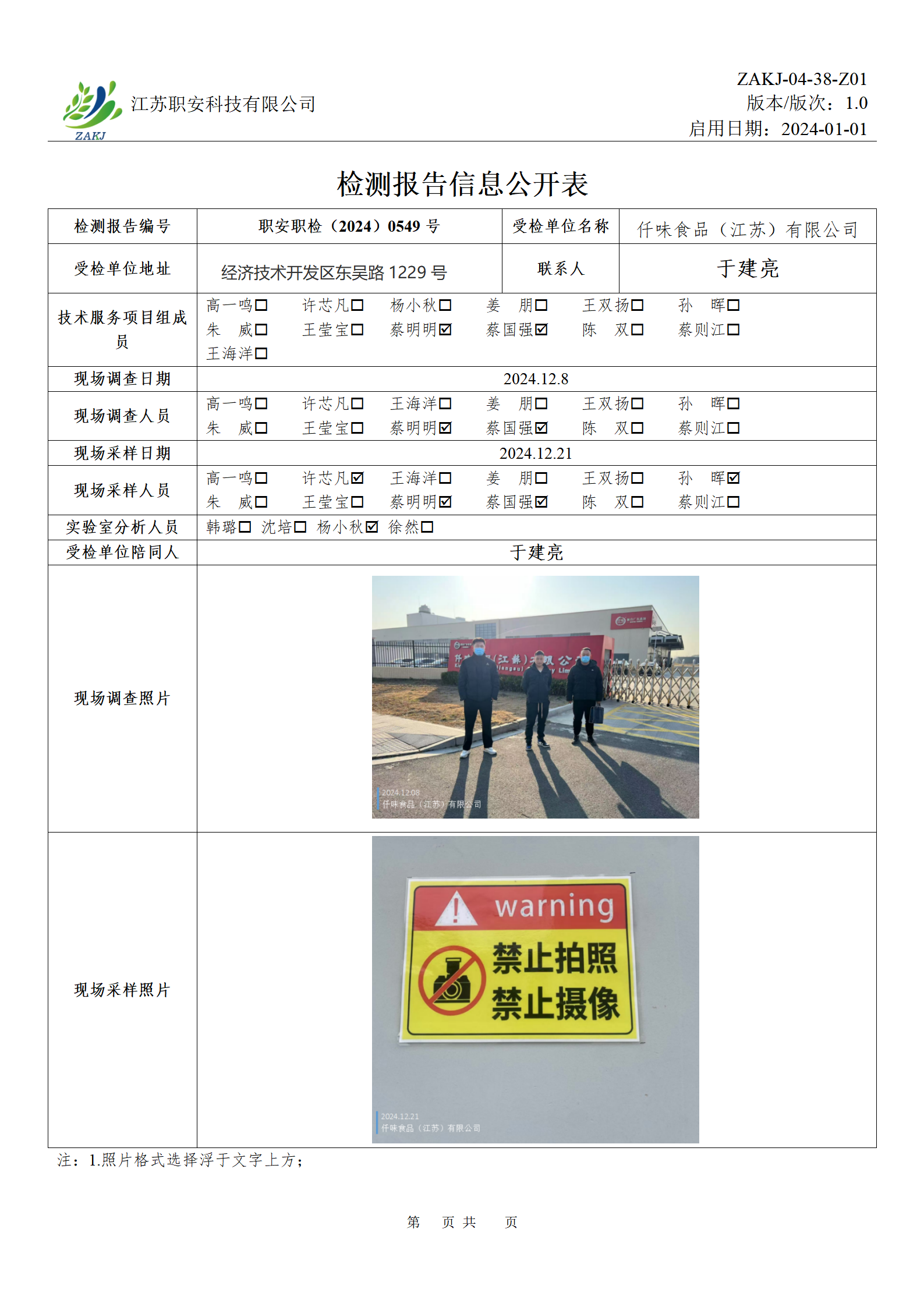 檢測報告公示