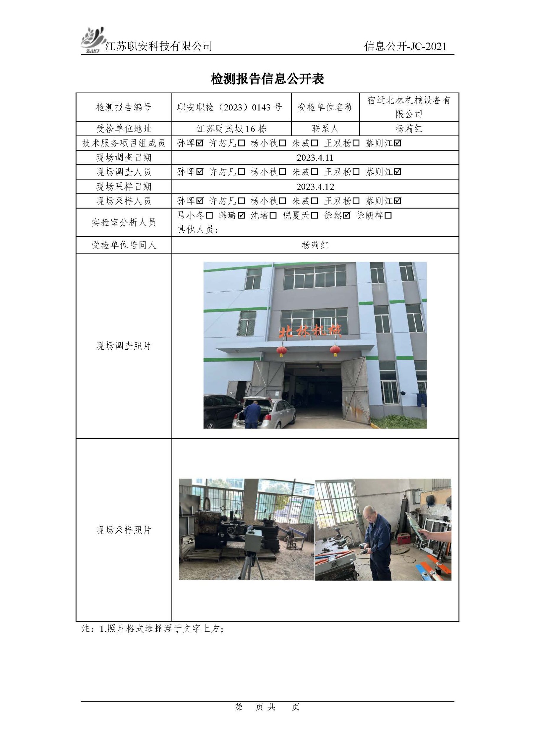 檢測報告公示