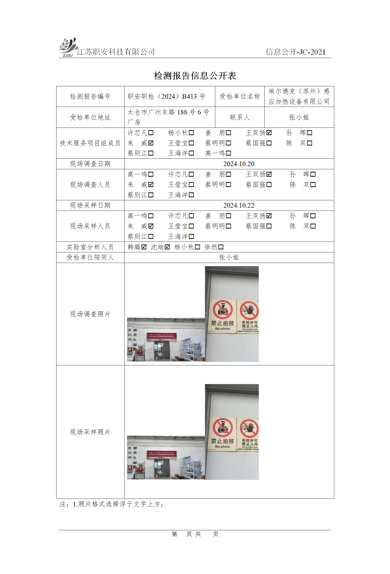 檢測報告公示