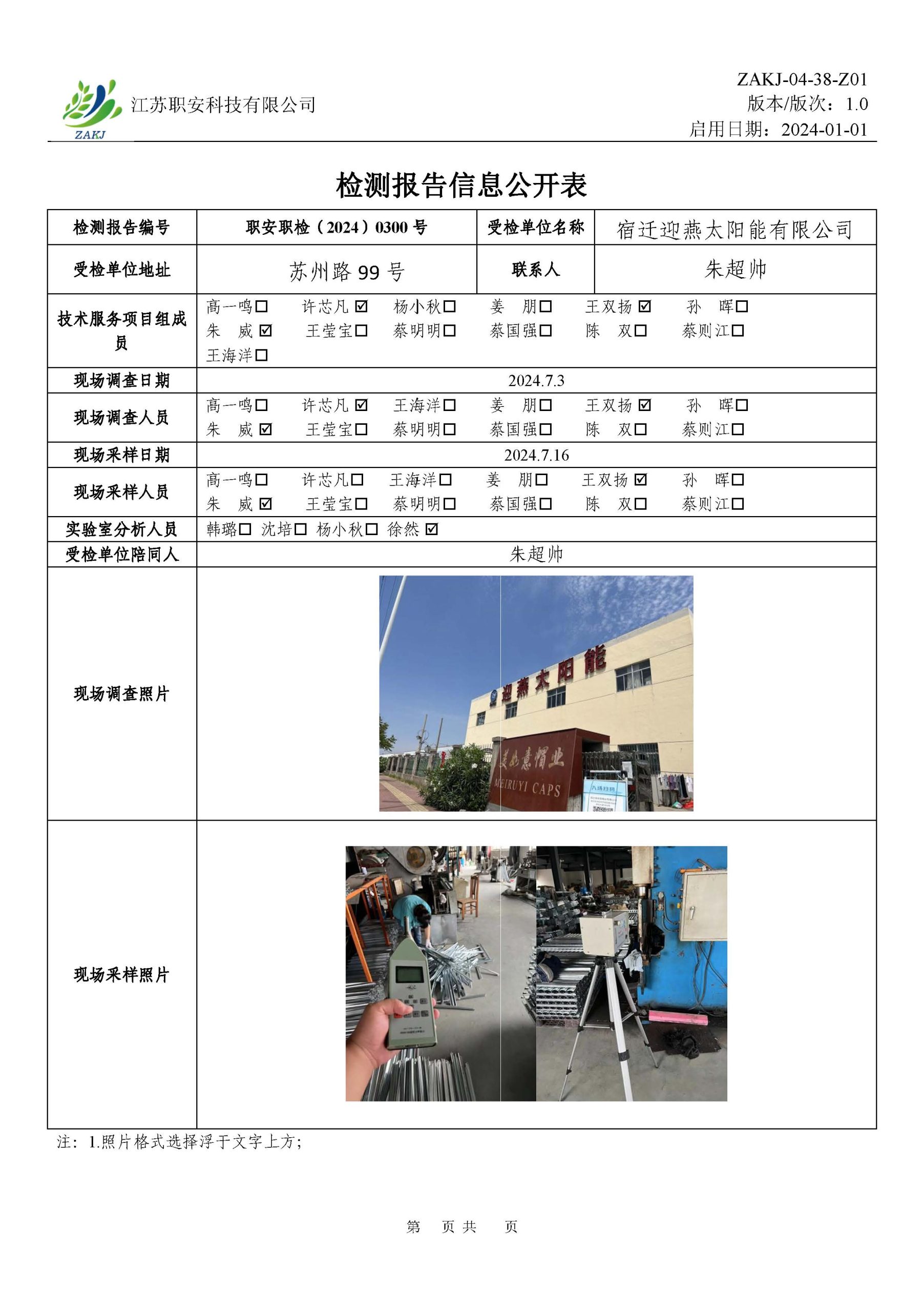 檢測報告公示