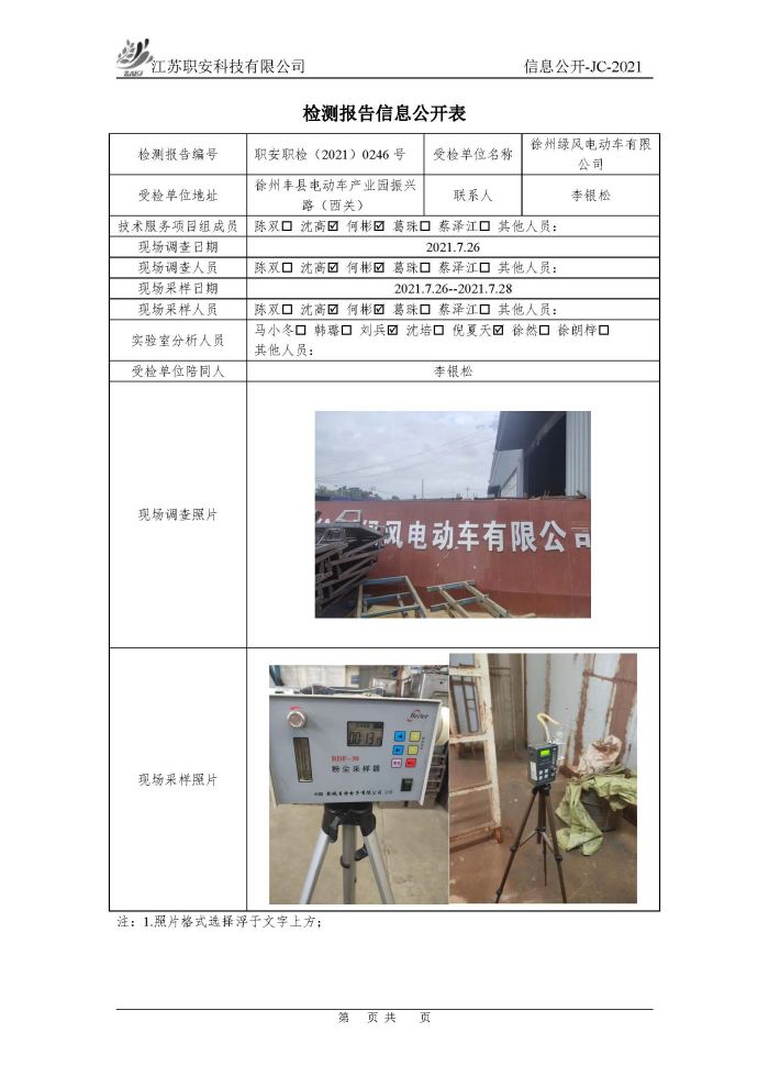 檢測報告公示