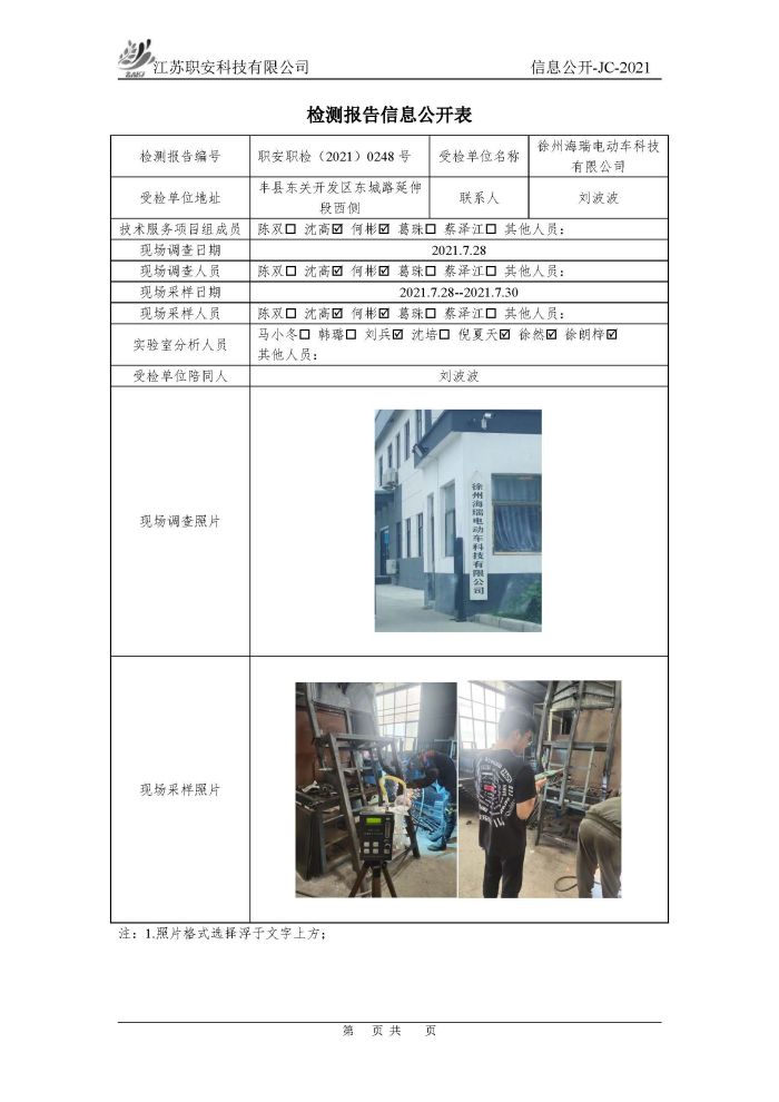 檢測報告公示