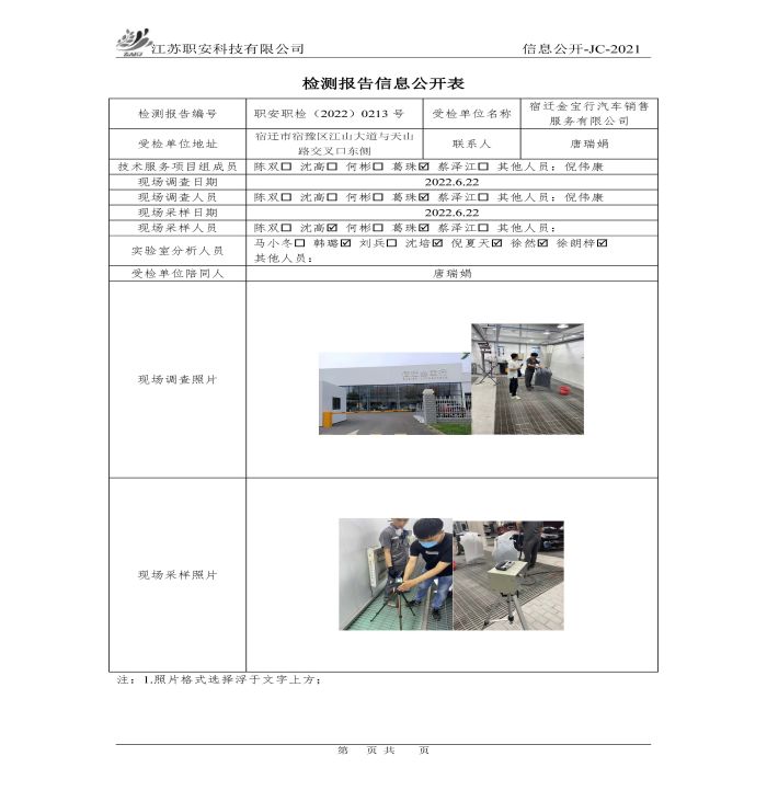 檢測報告公示