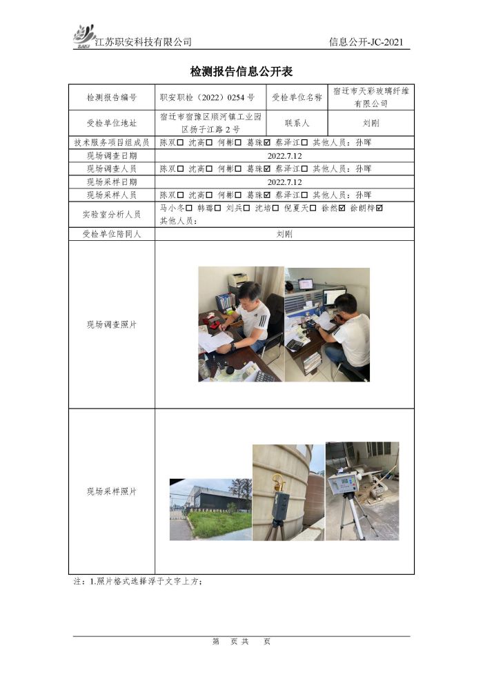 檢測報告公示