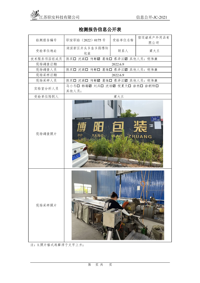 檢測報告公示