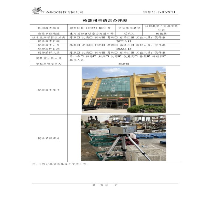 檢測報告公示