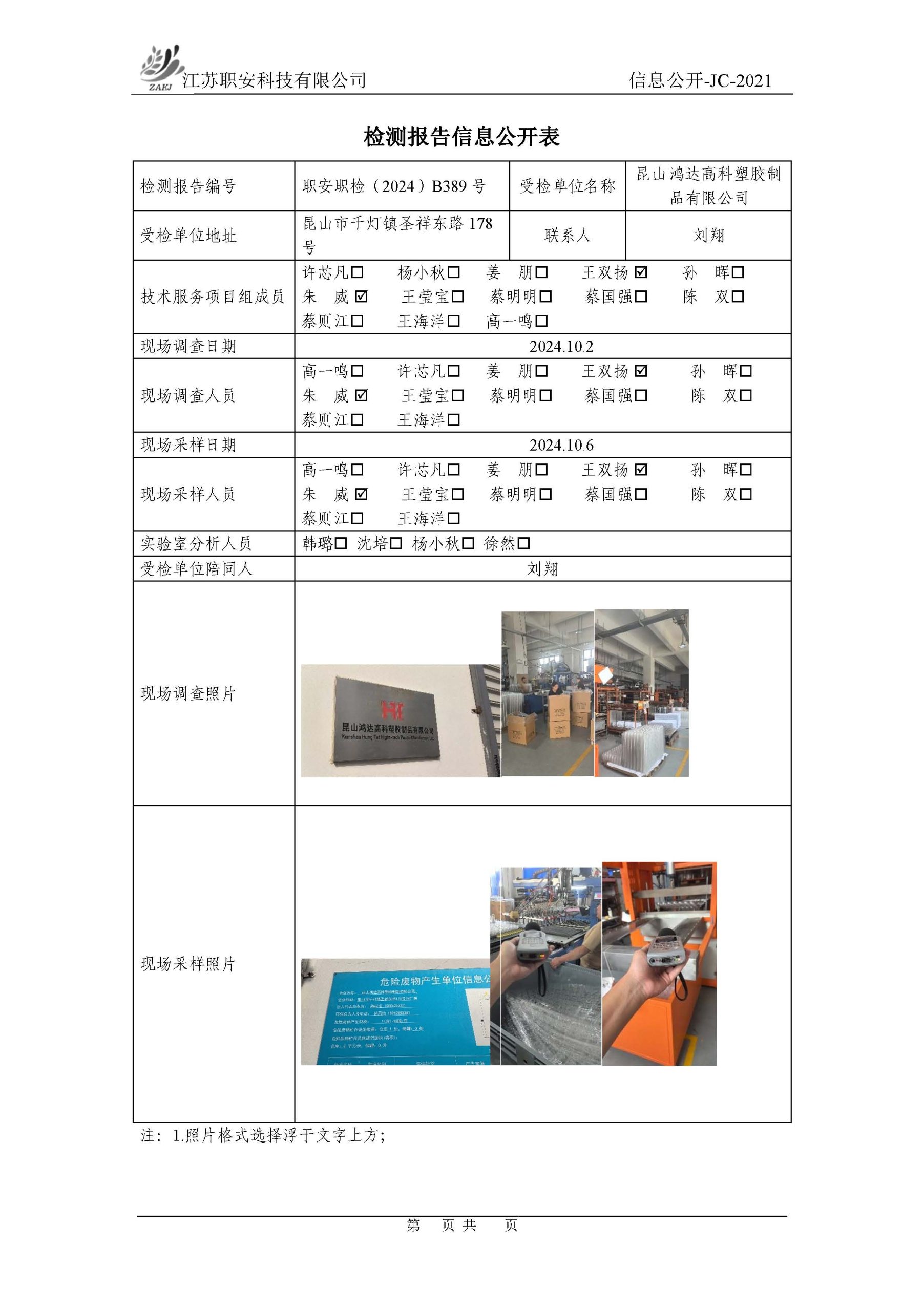檢測報告公示