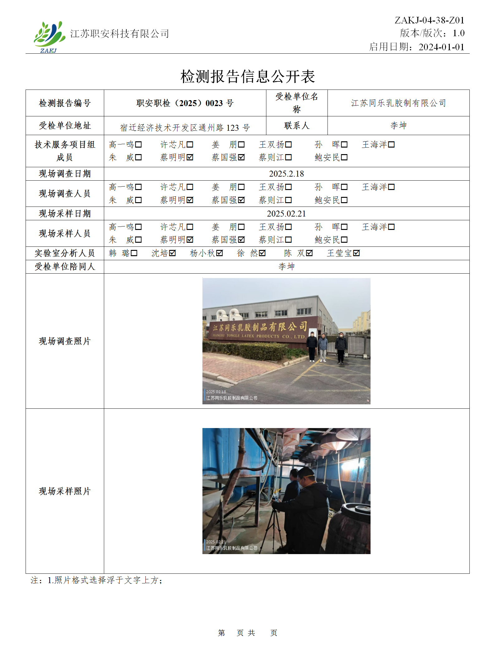 檢測報告公示