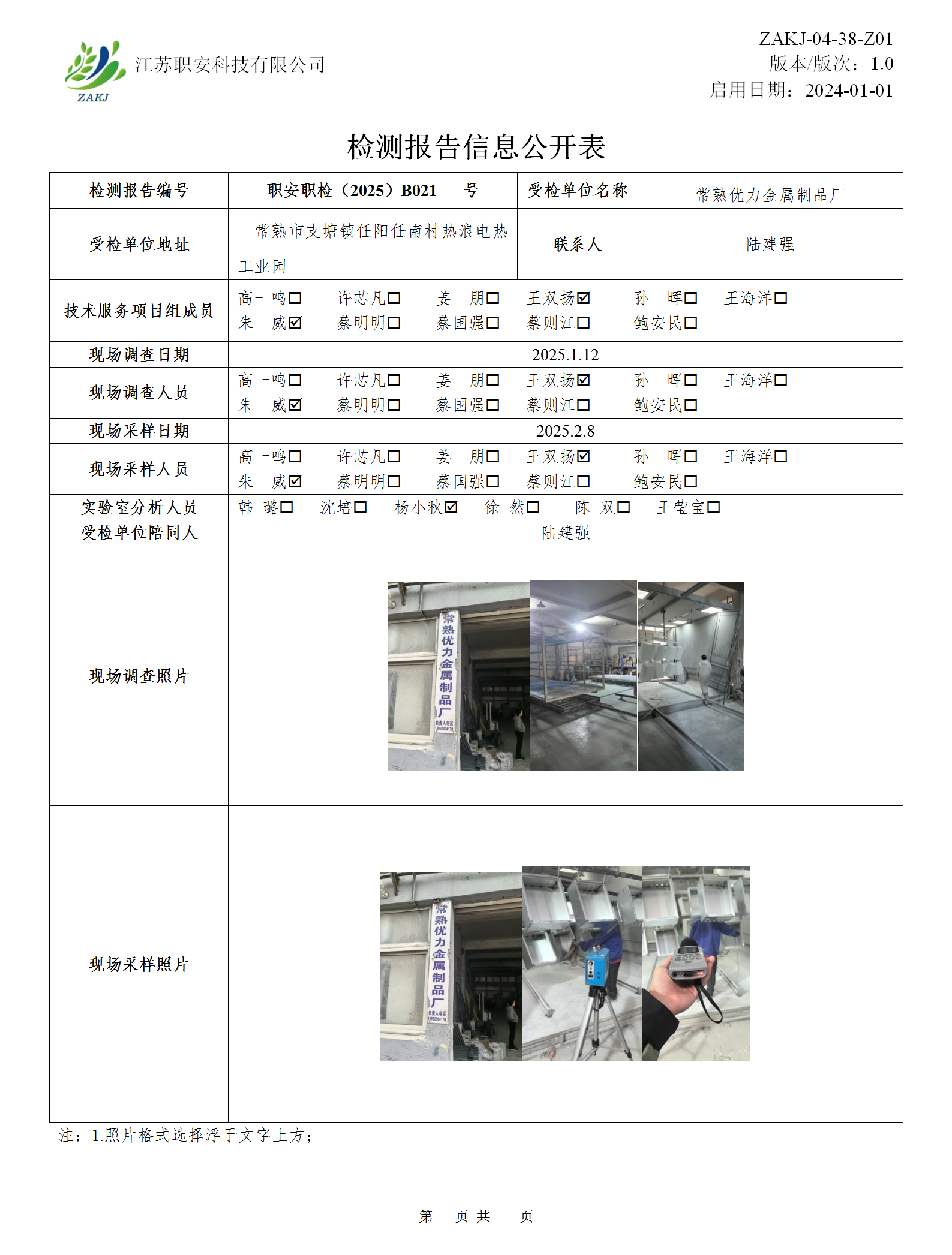 檢測報告公示