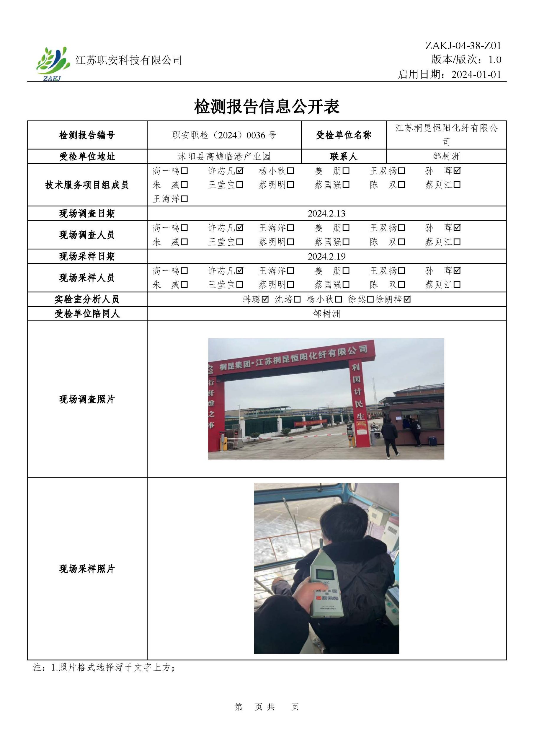檢測報告公示
