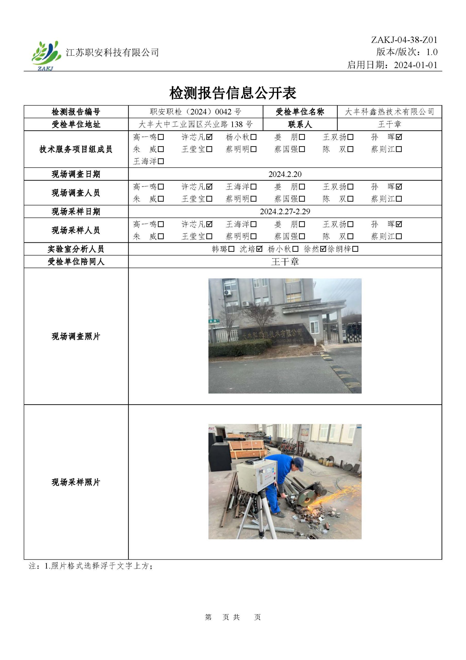 檢測報告公示
