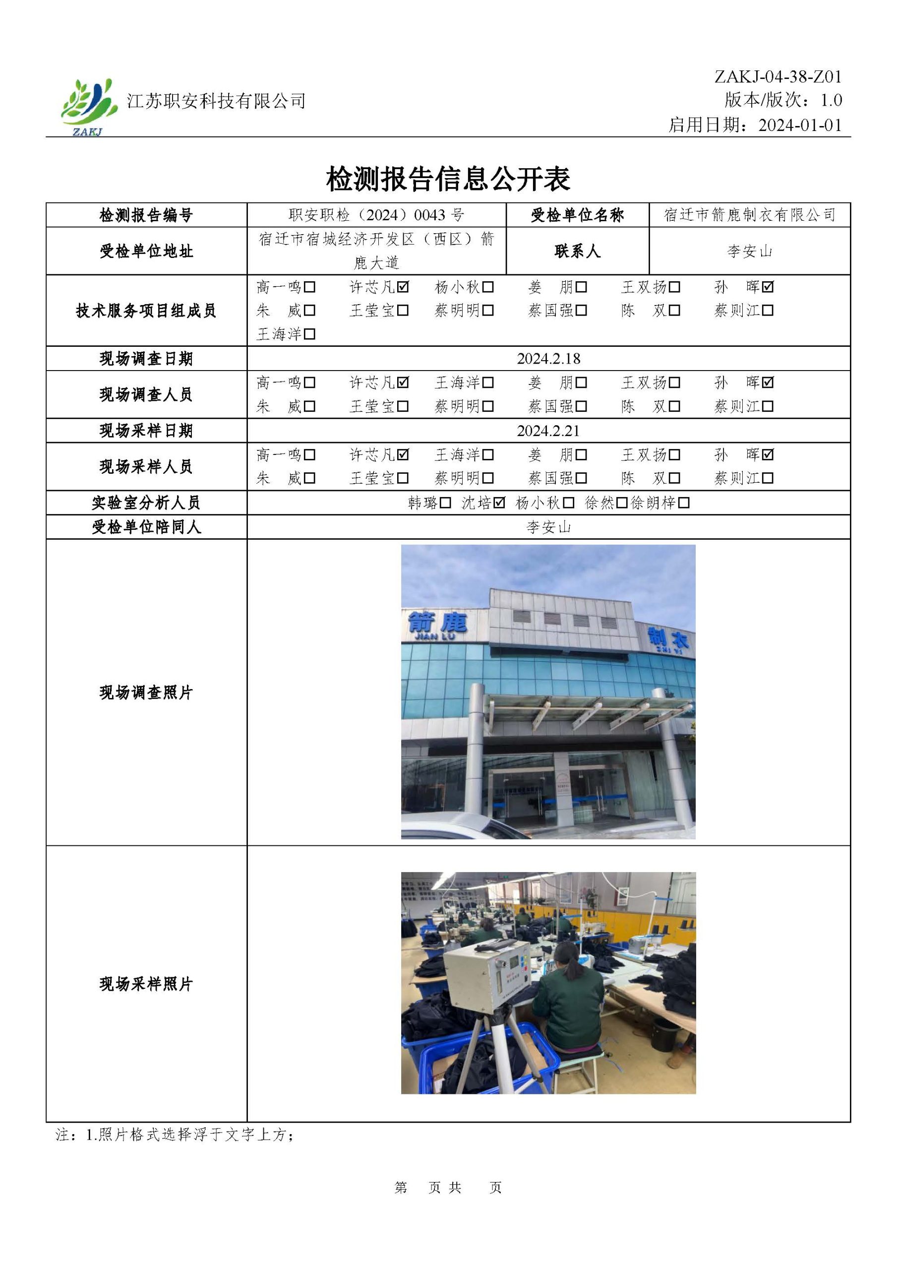 檢測報告公示