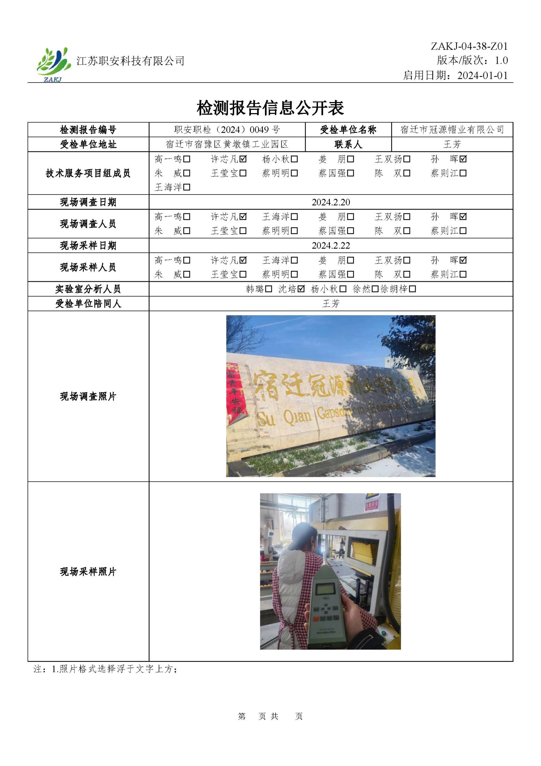 檢測報告公示