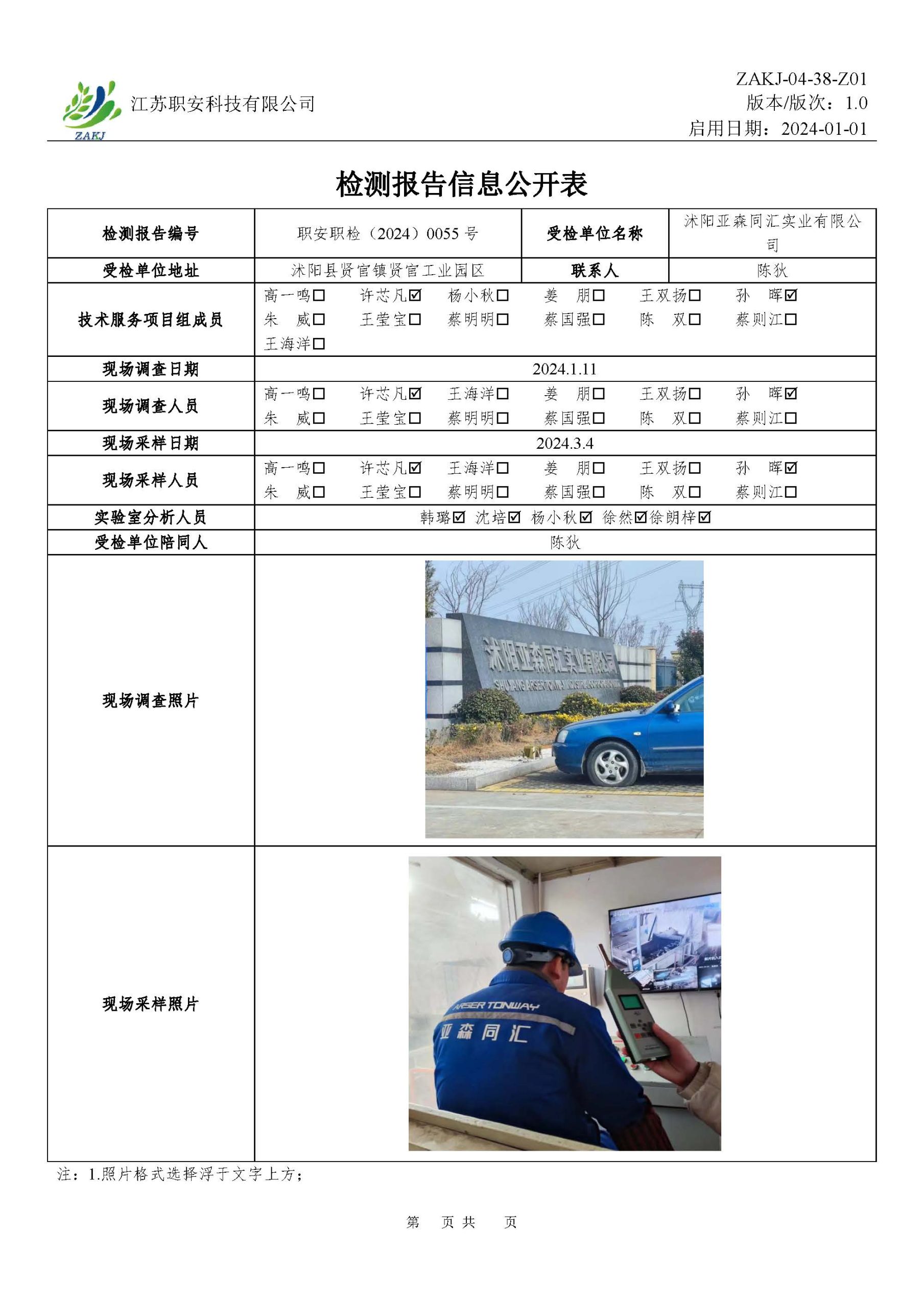 檢測報告公示