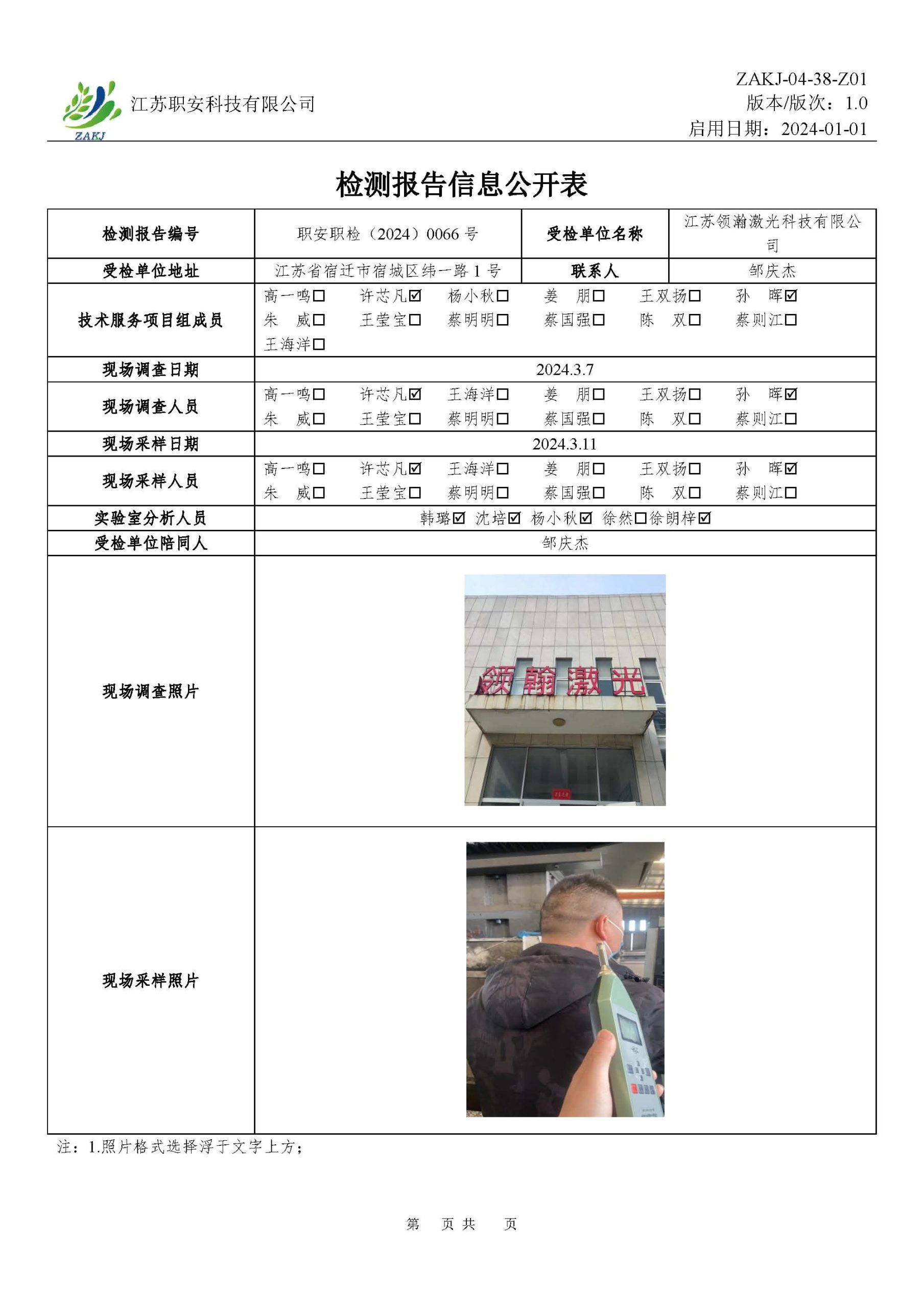 檢測報告公示