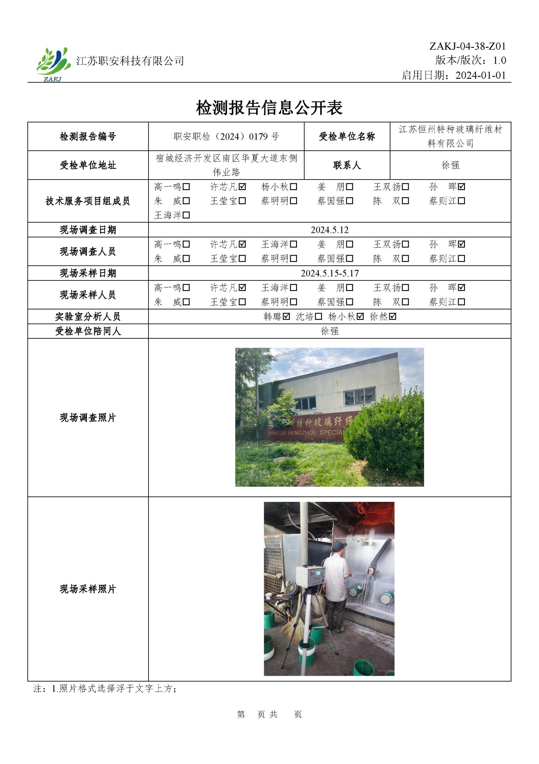 檢測報告公示