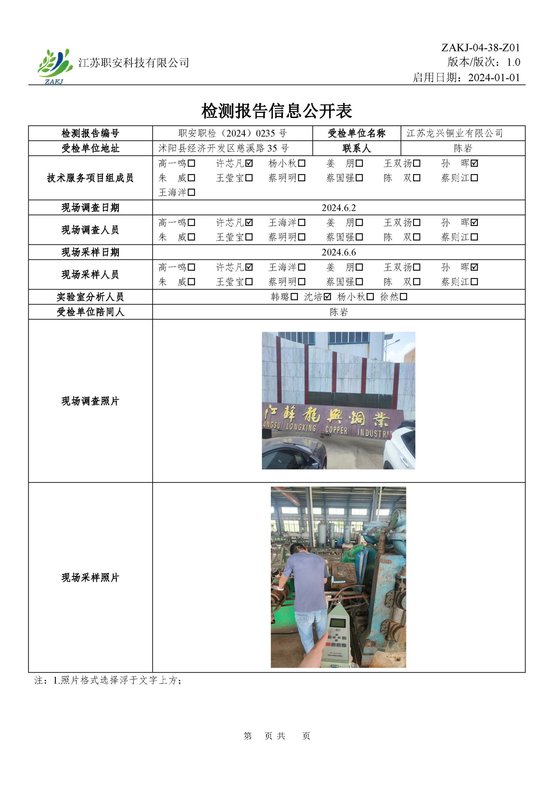 • 信息公開, 檢測報告公示