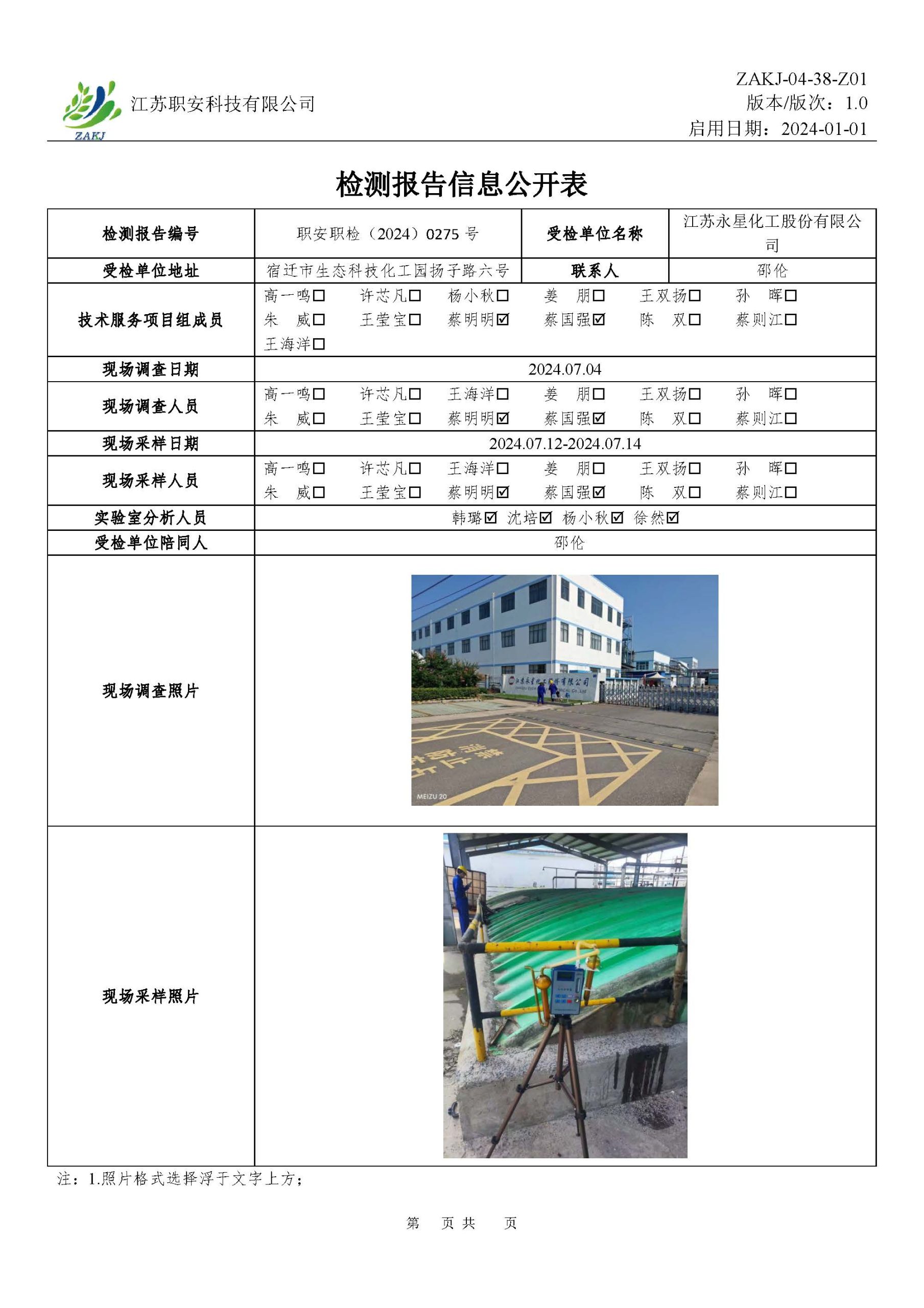 檢測報告公示