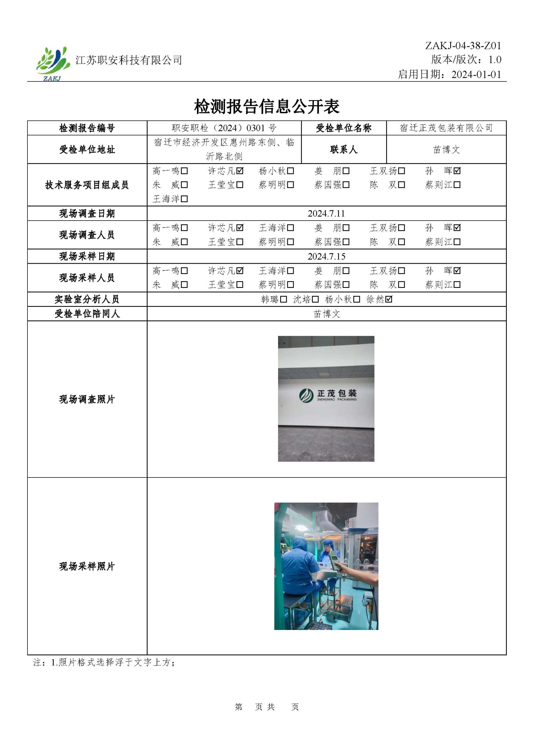 檢測報告公示