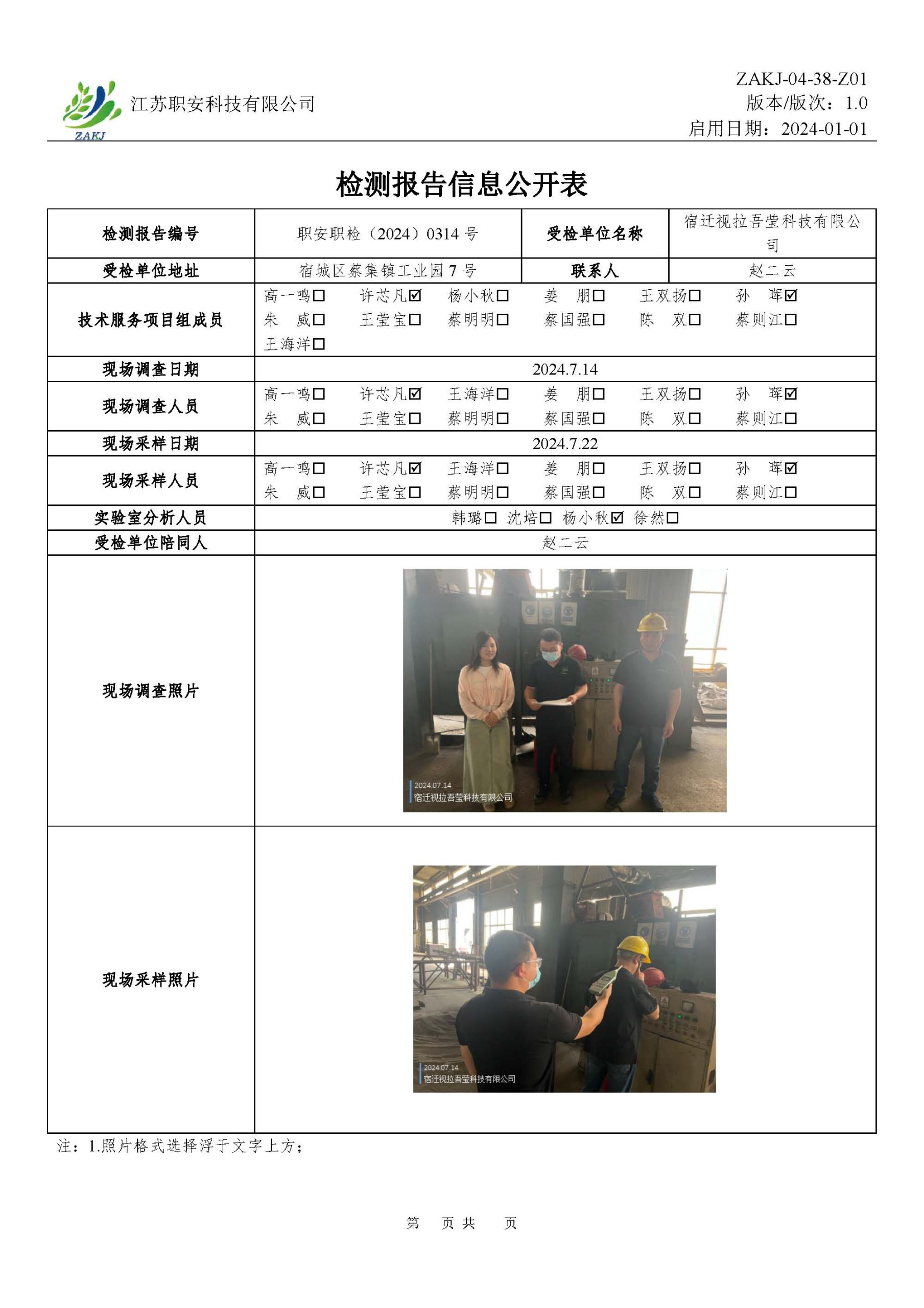 檢測報告公示