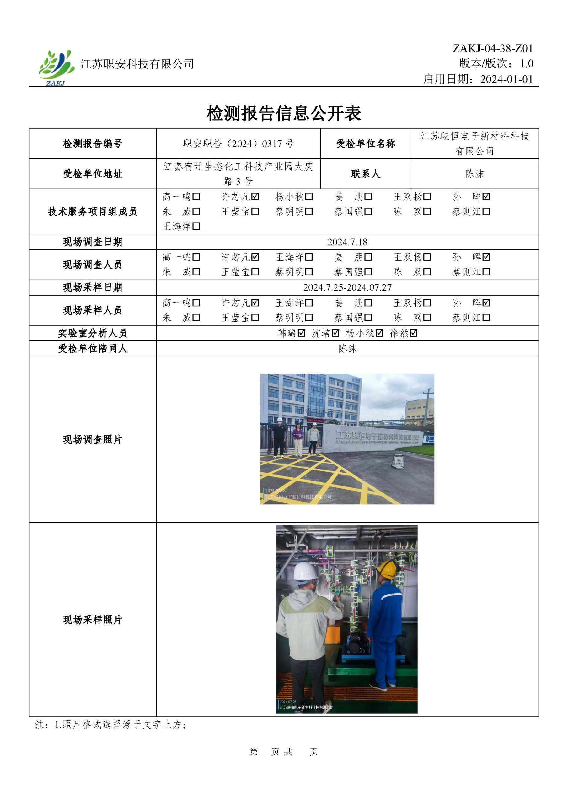 檢測報告公示