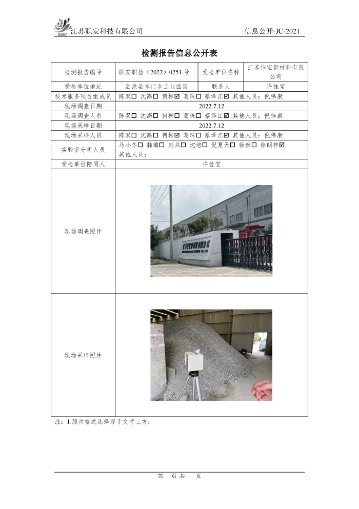 檢測報告公示
