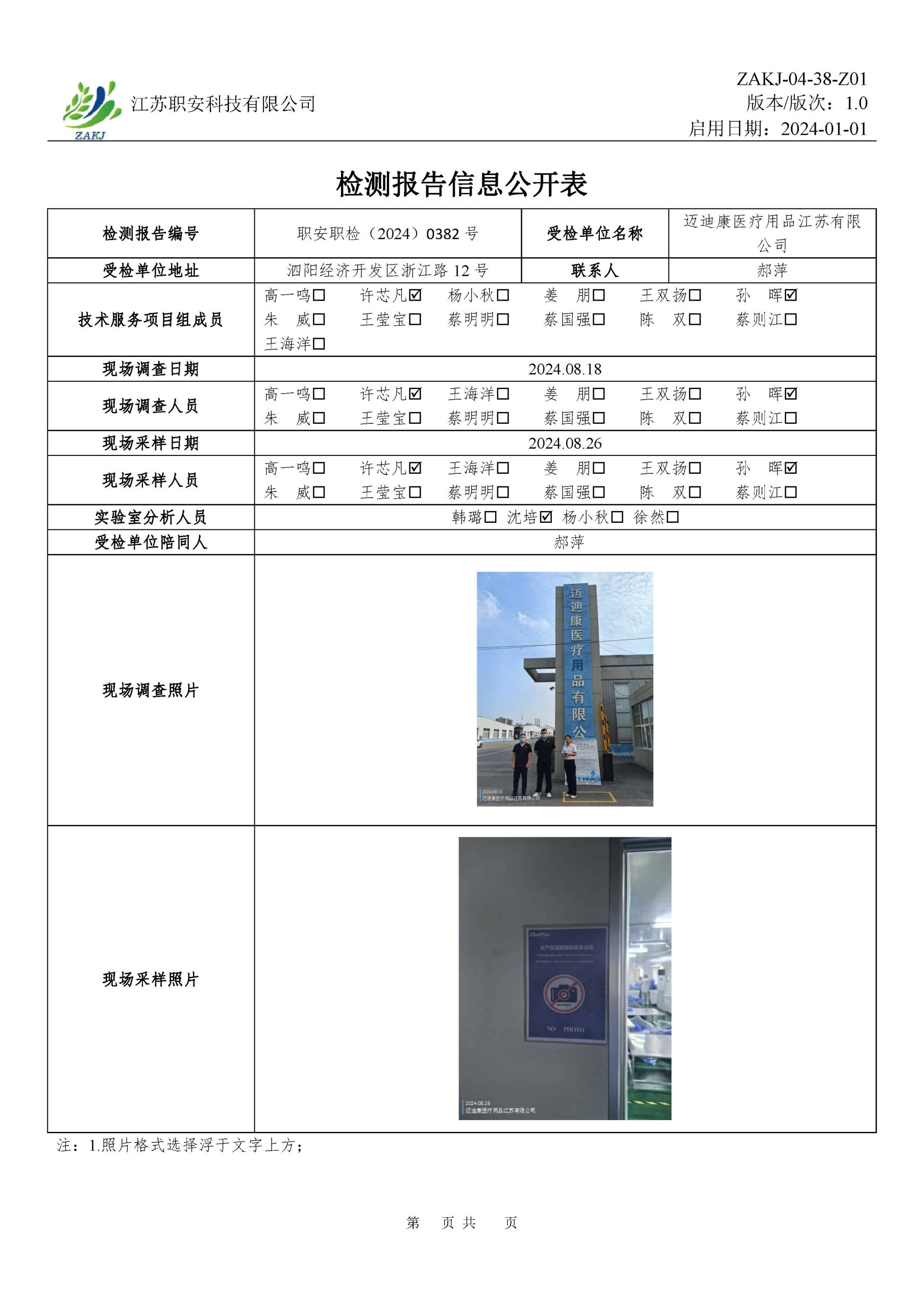 檢測報告公示