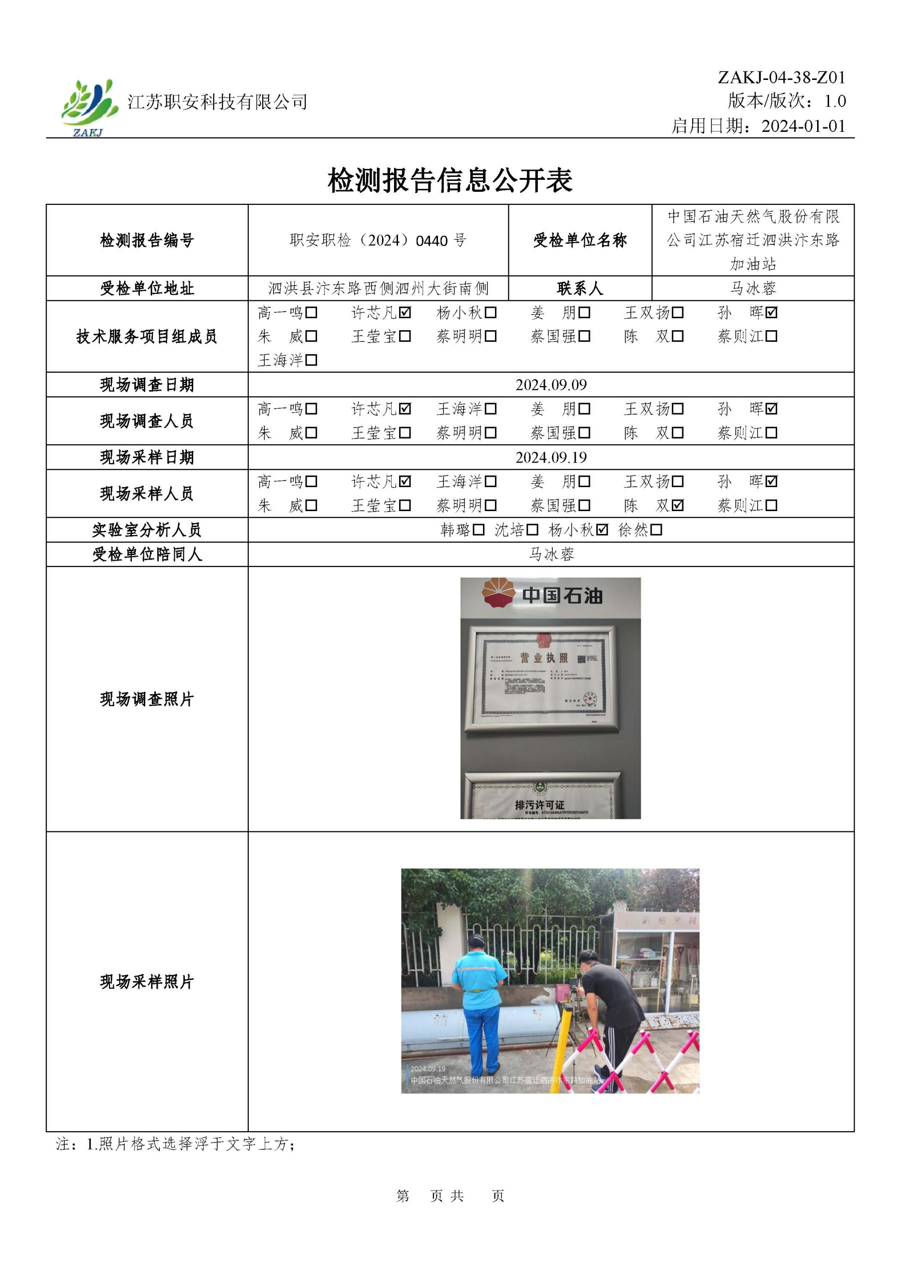 檢測報告公示