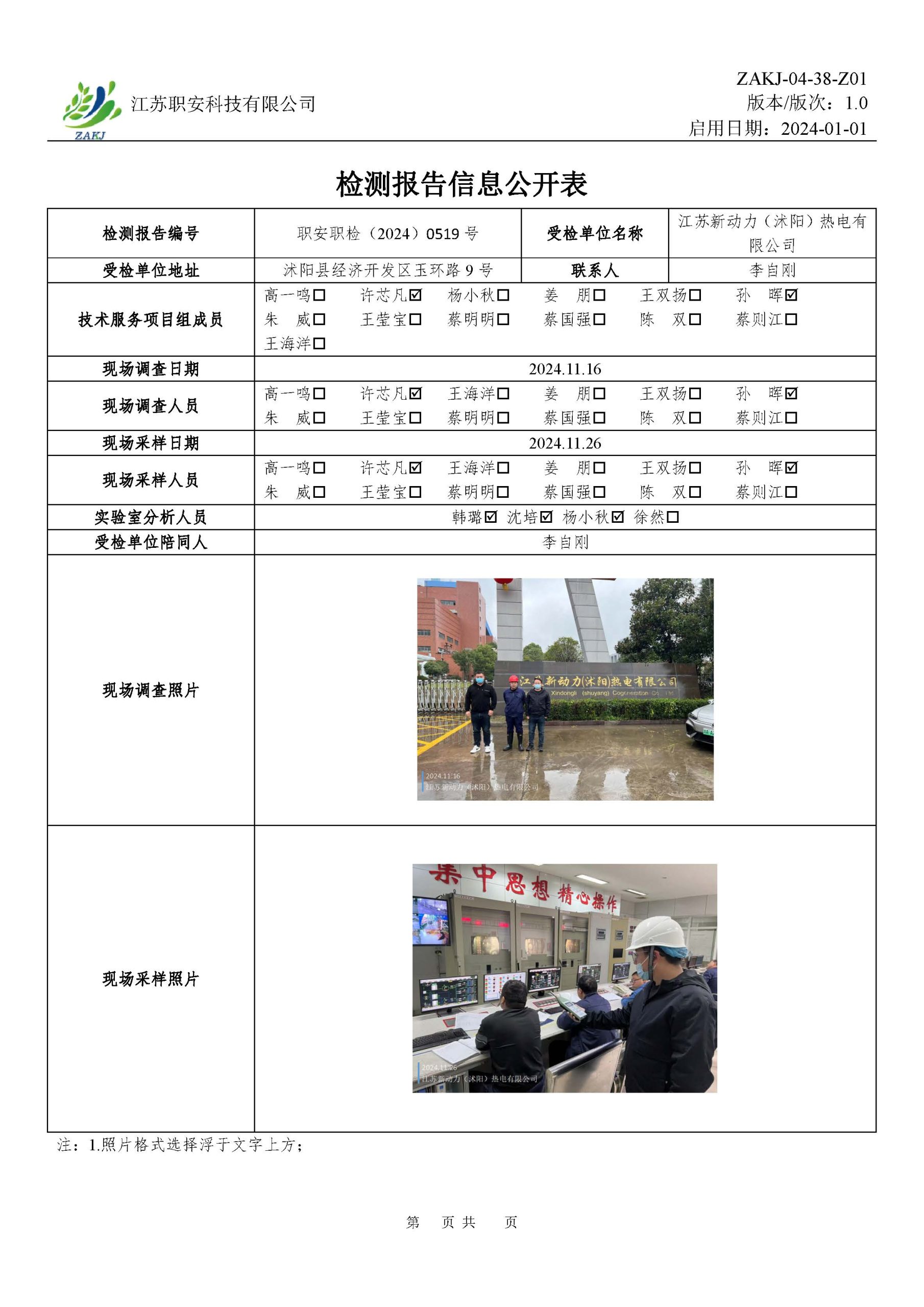 檢測報告公示