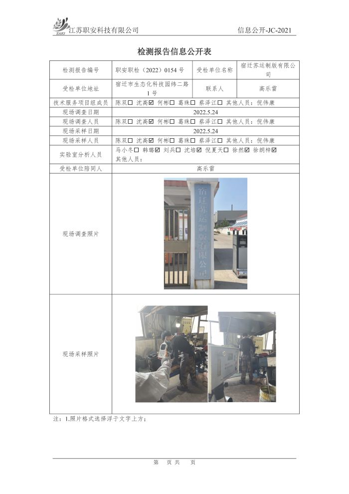 檢測報告公示