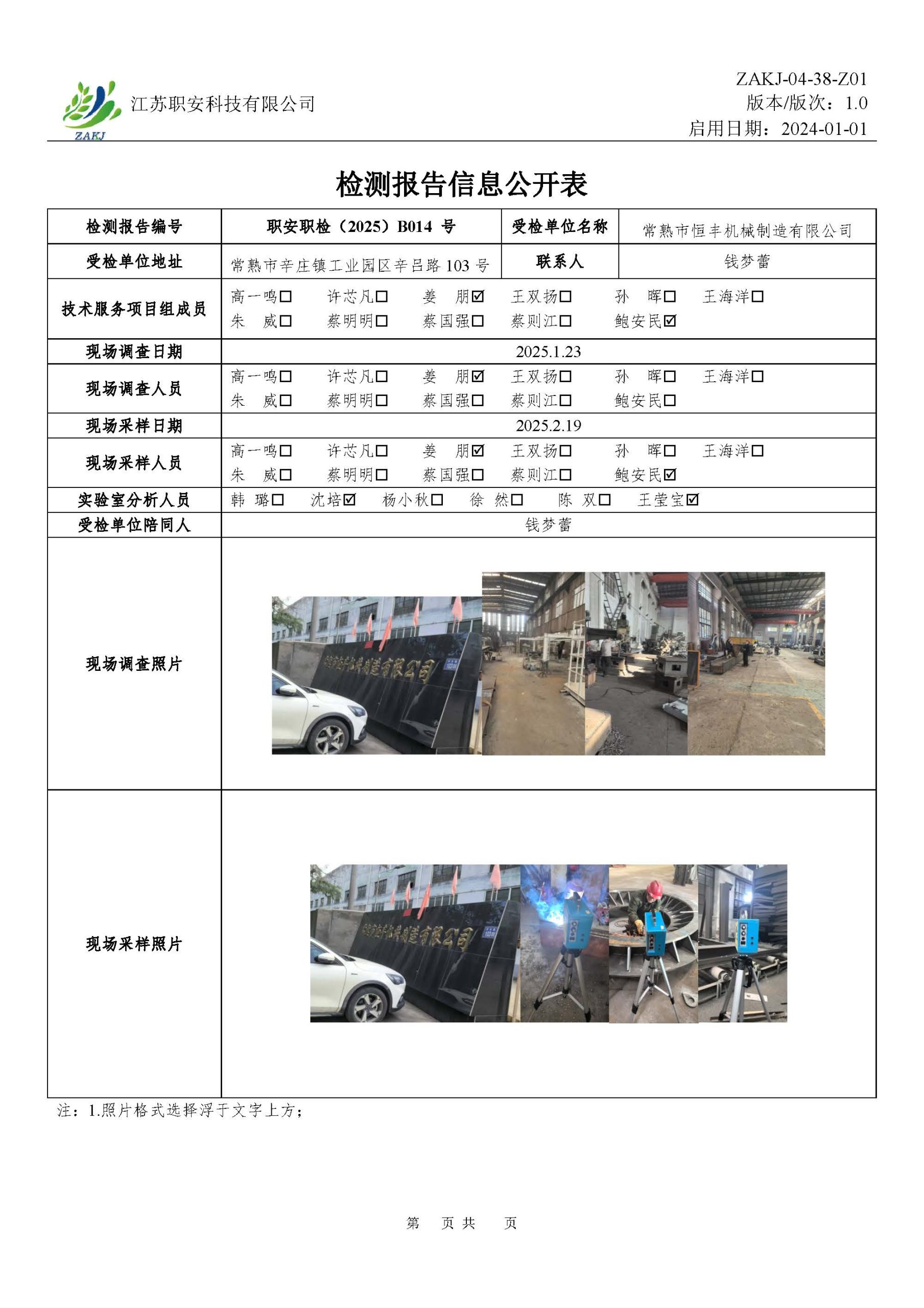 檢測報告公示