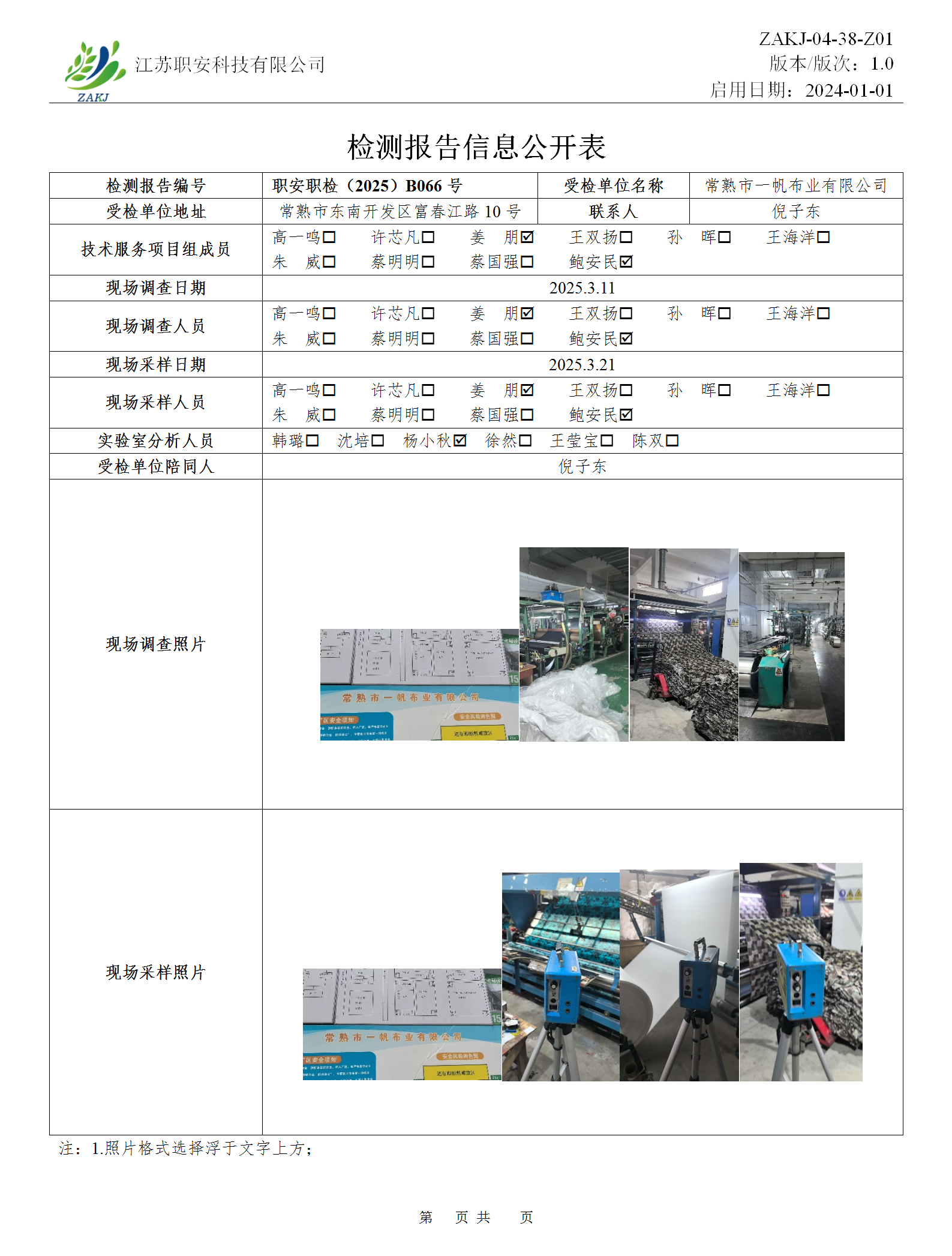 檢測報告公示