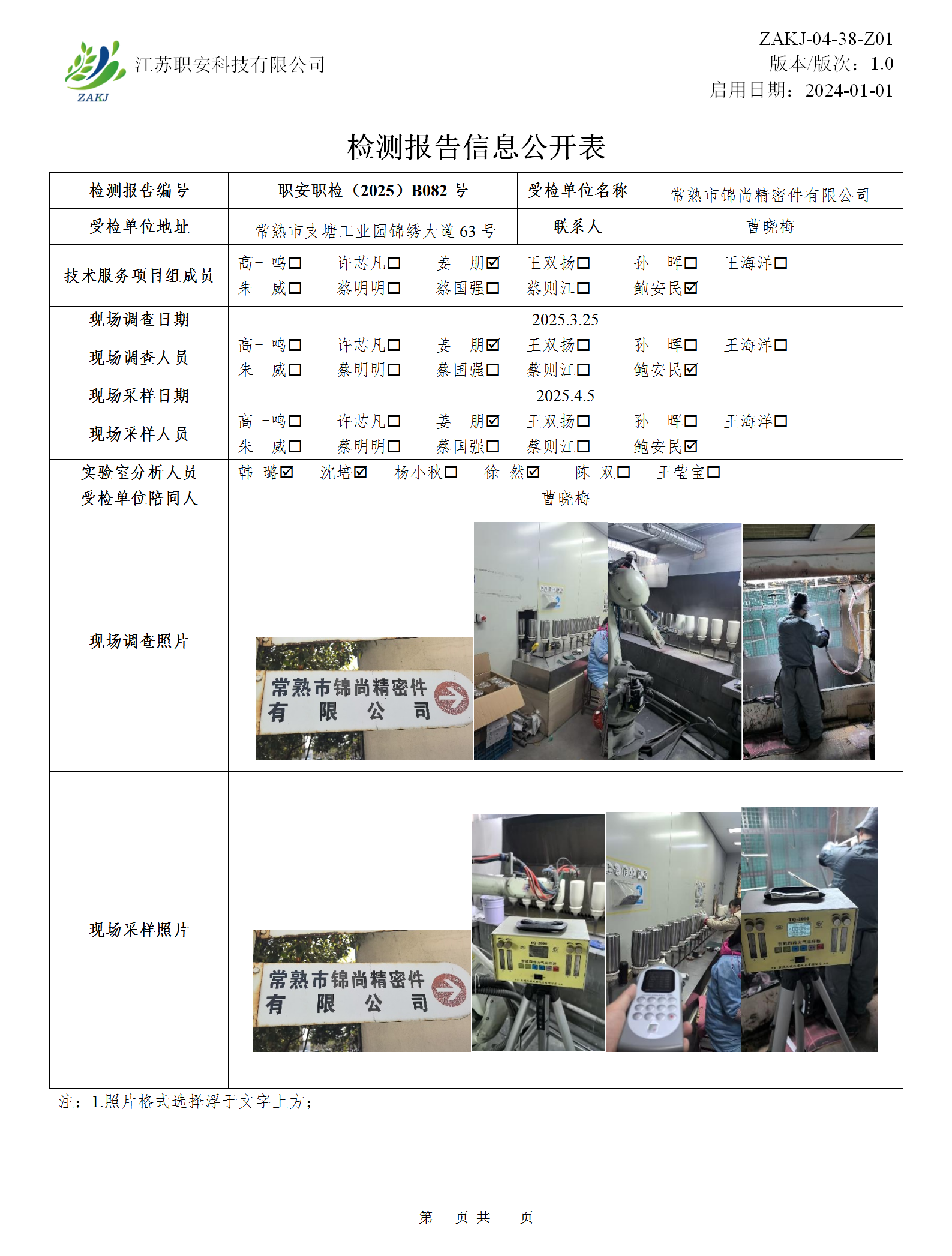 檢測報告公示