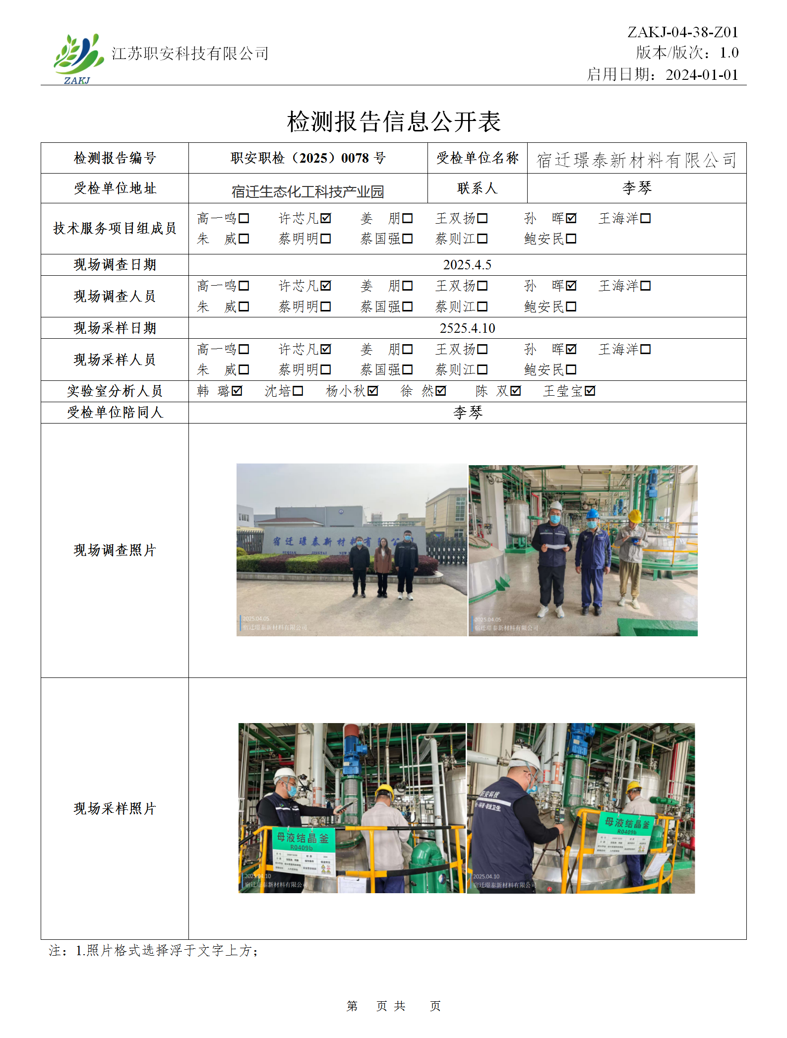 檢測報告公示