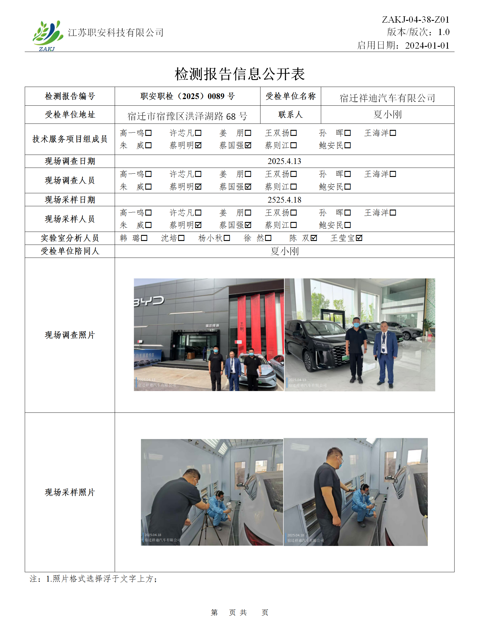 檢測報告公示