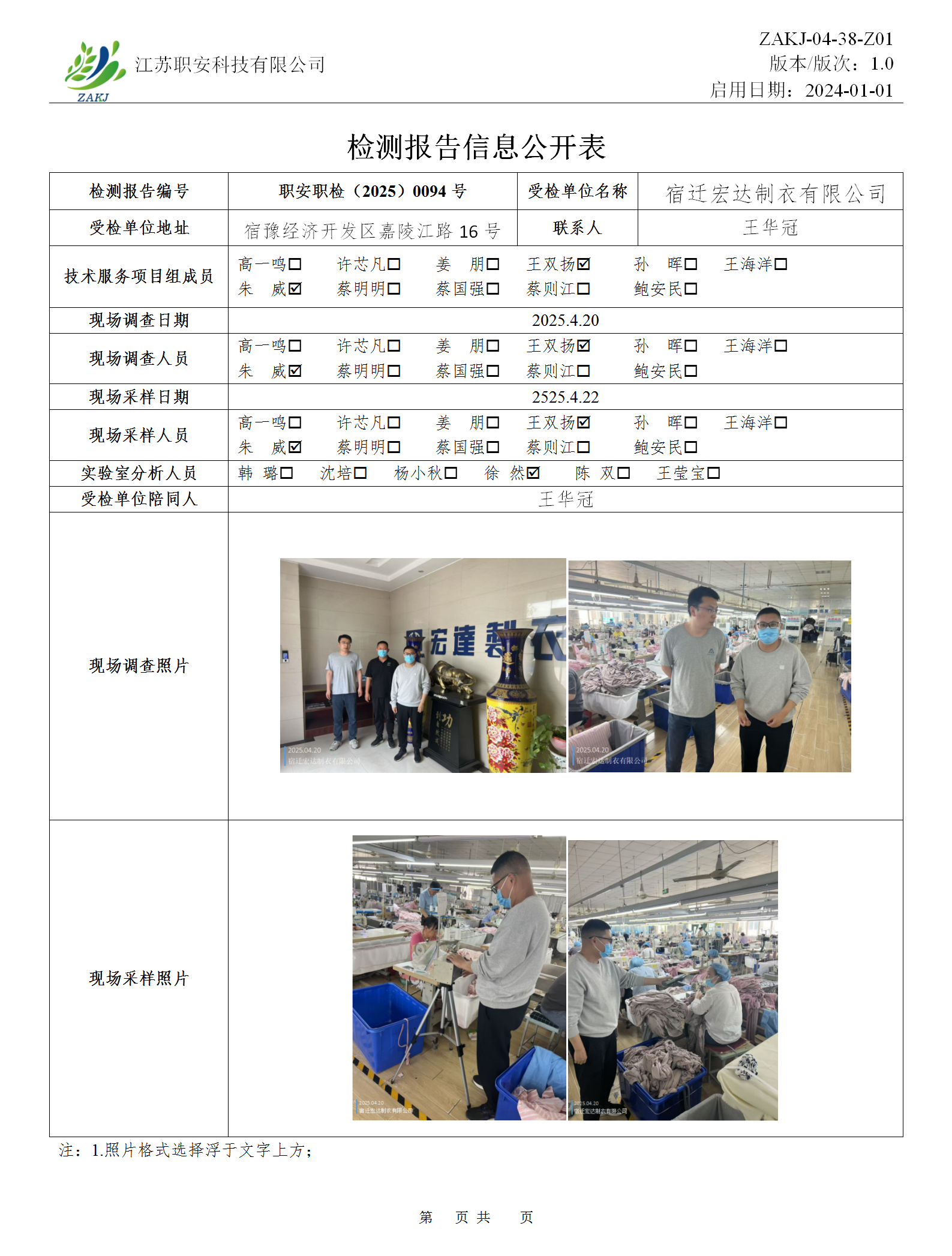 檢測報告公示