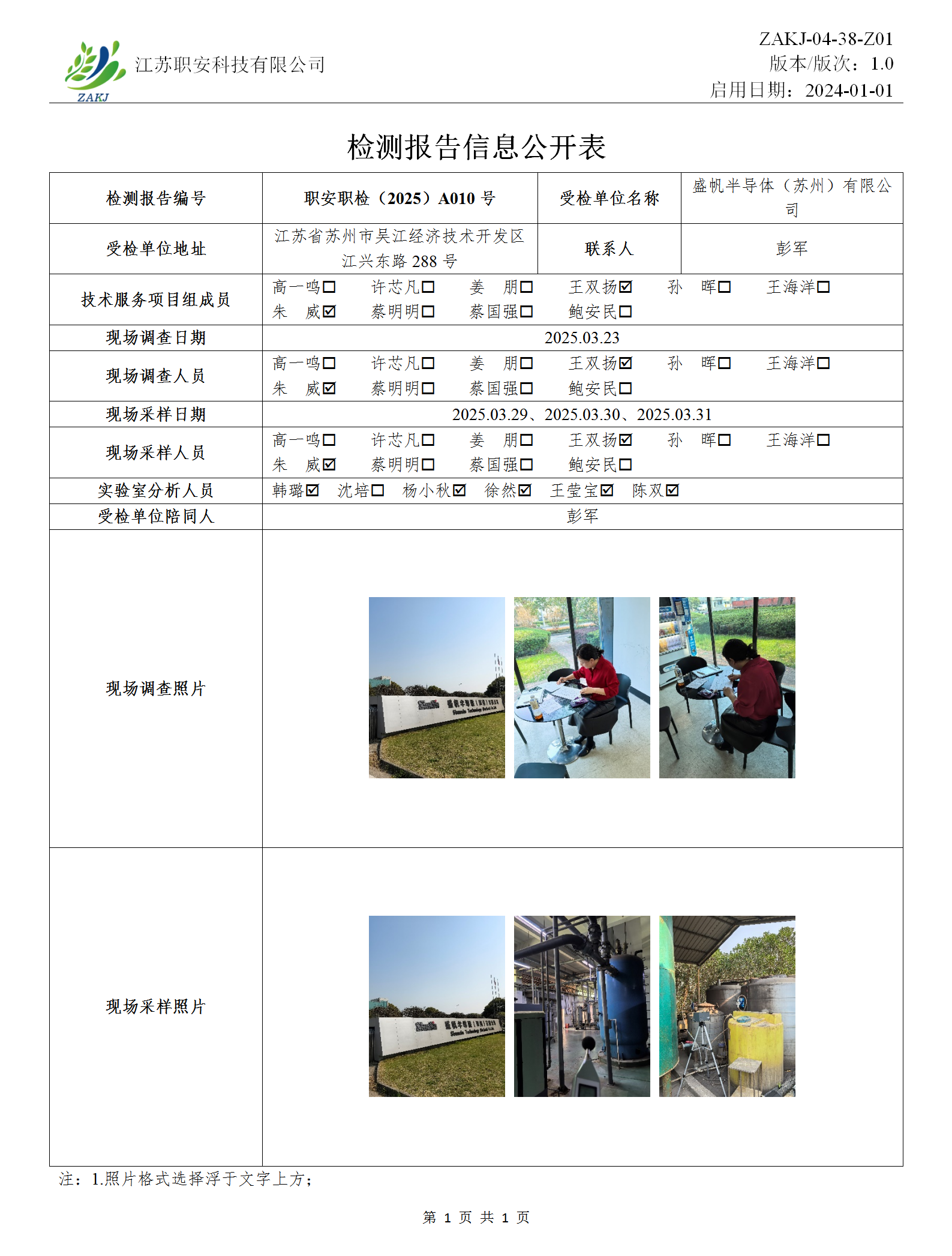 檢測報告公示
