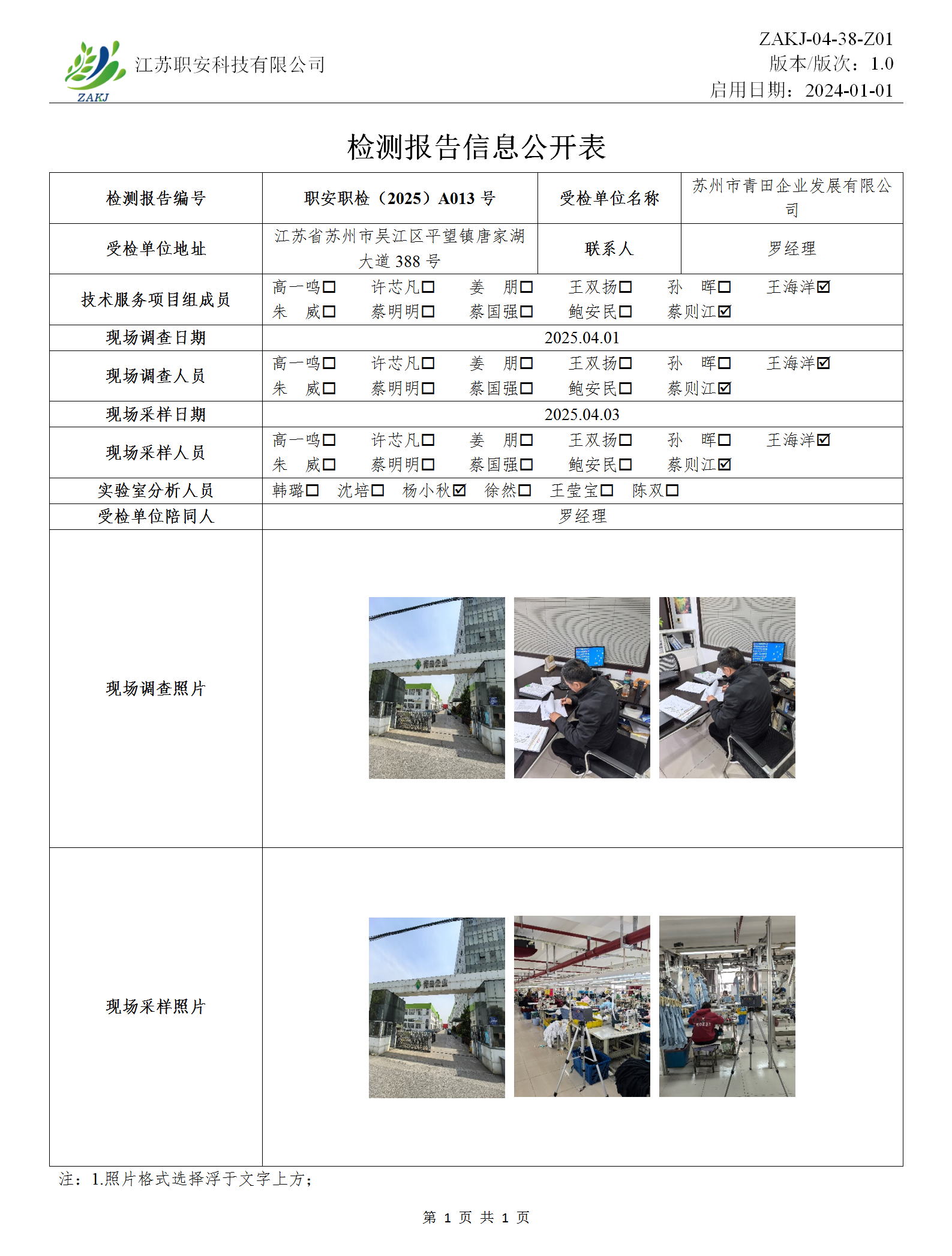 檢測報告公示