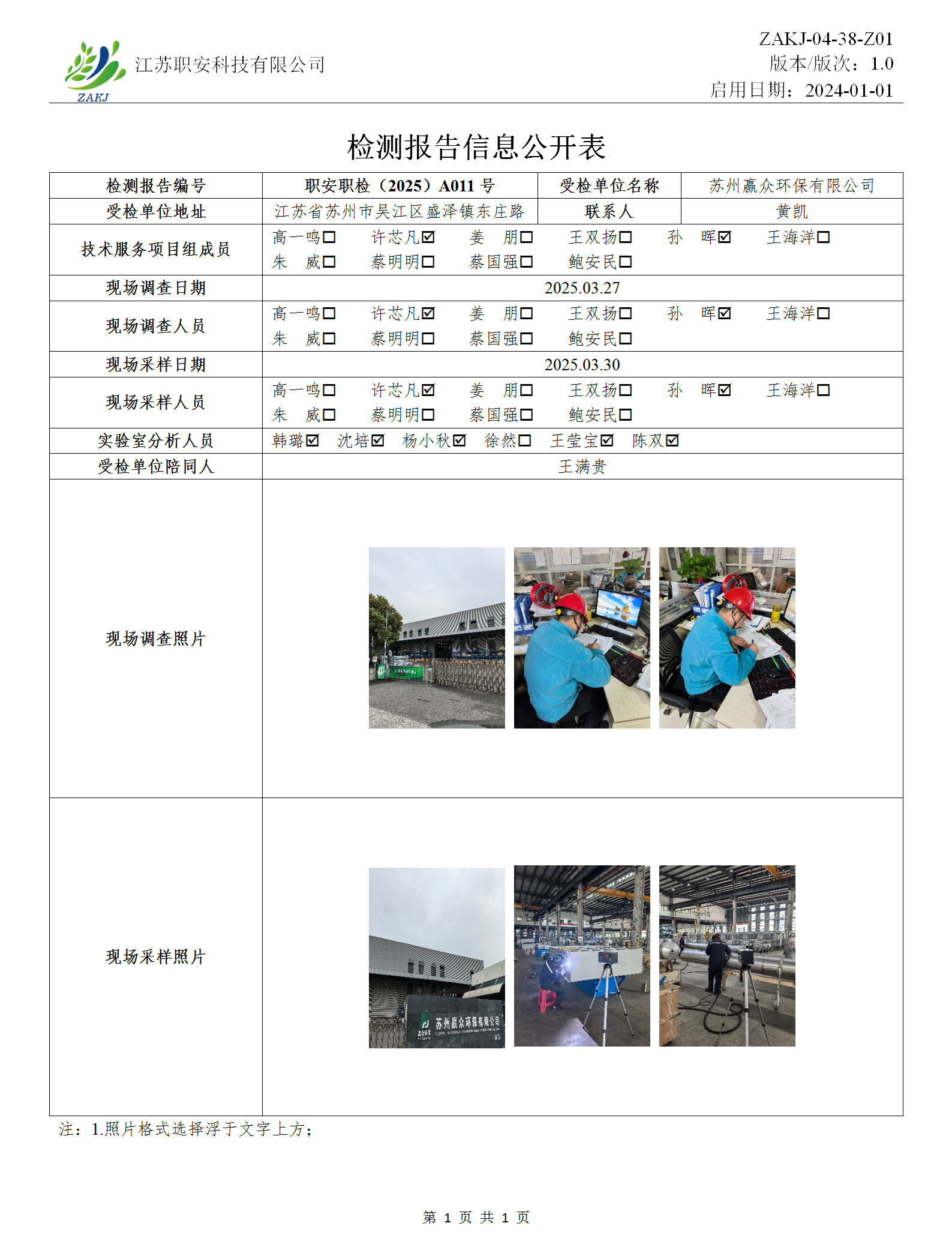 檢測報告公示