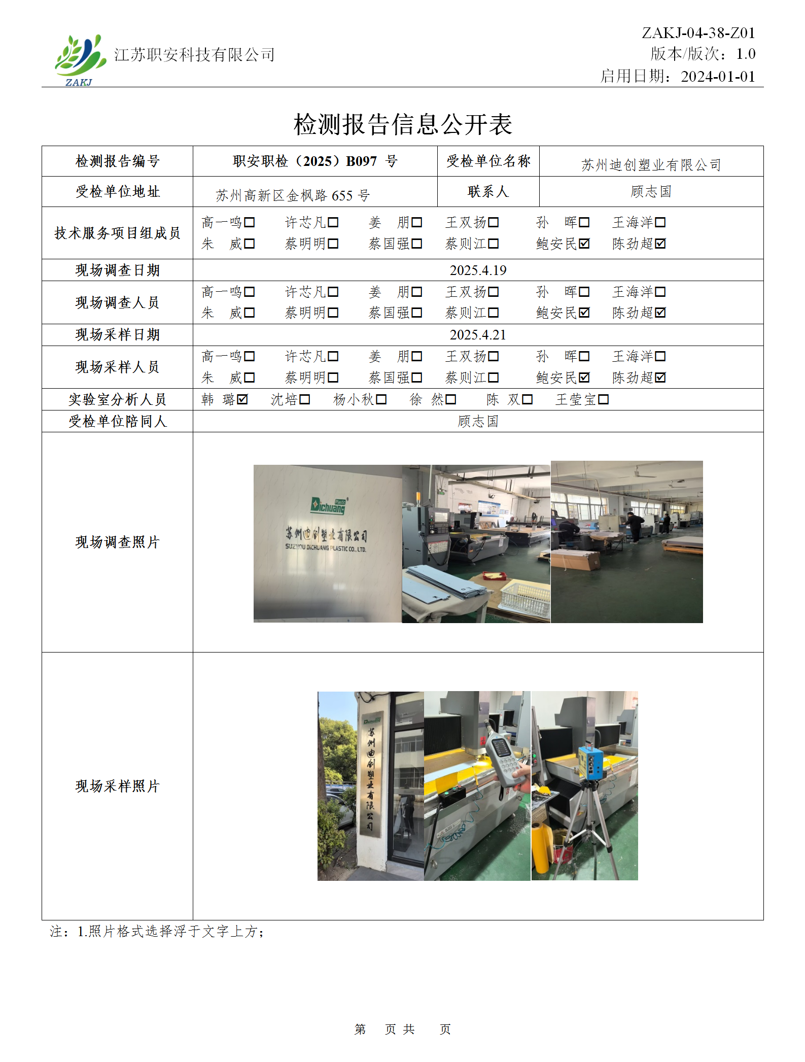 檢測報告公示
