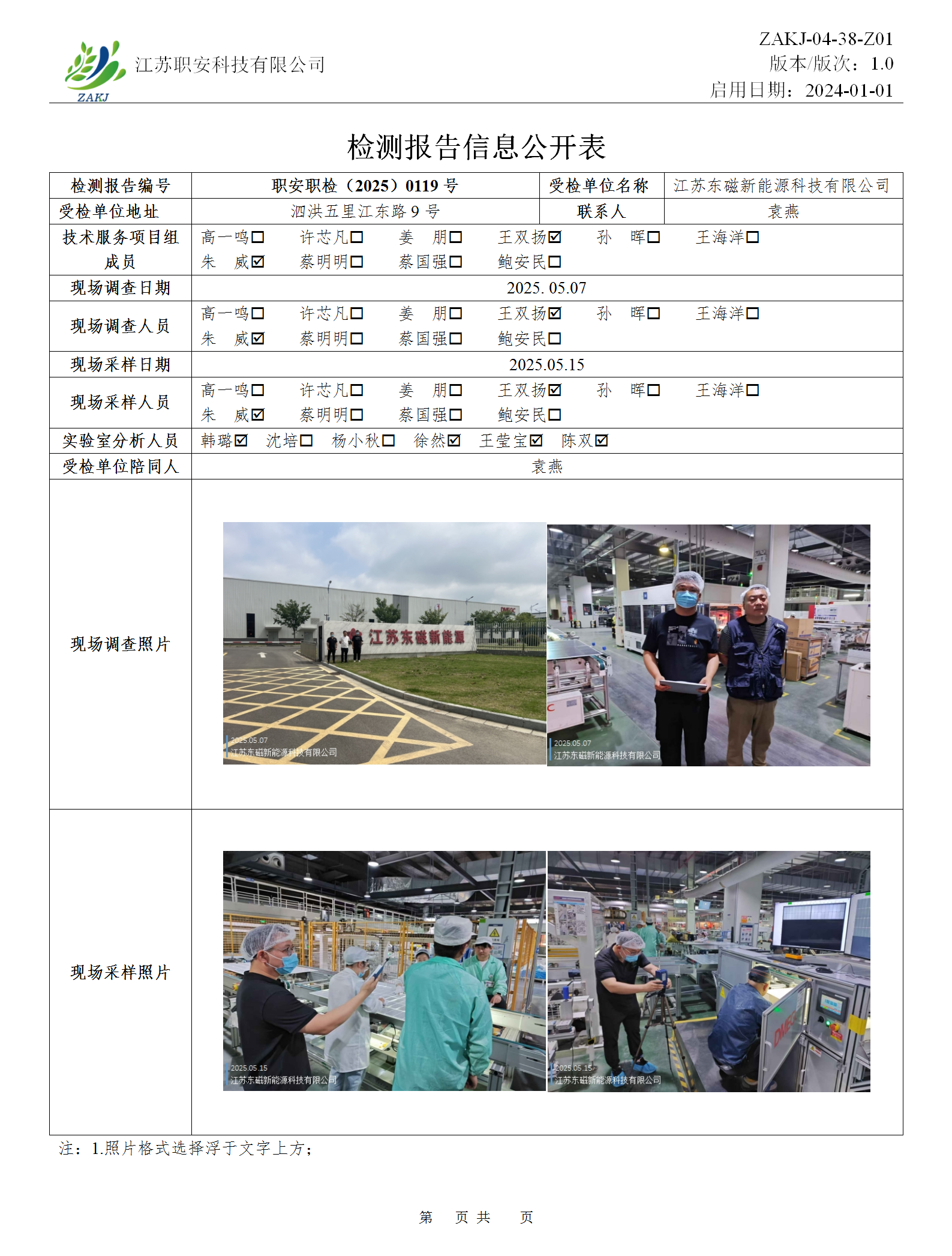 檢測報告公示