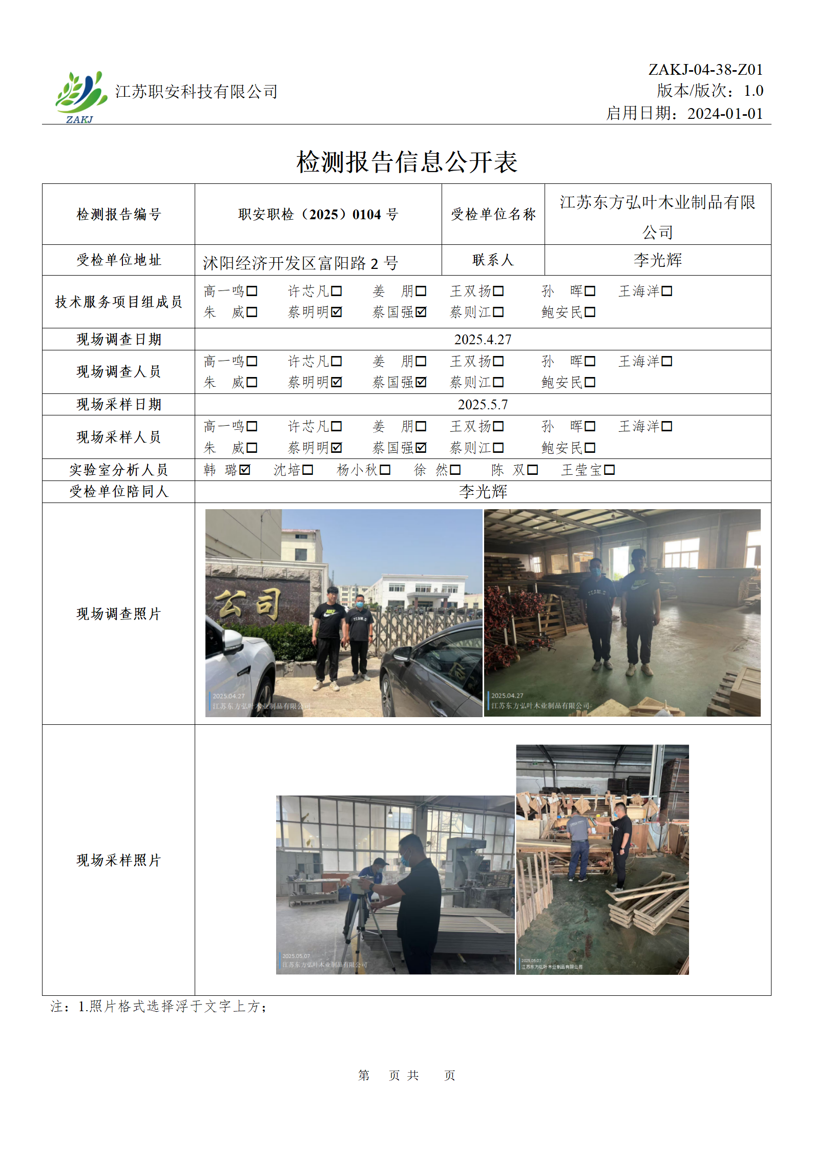 檢測報告公示