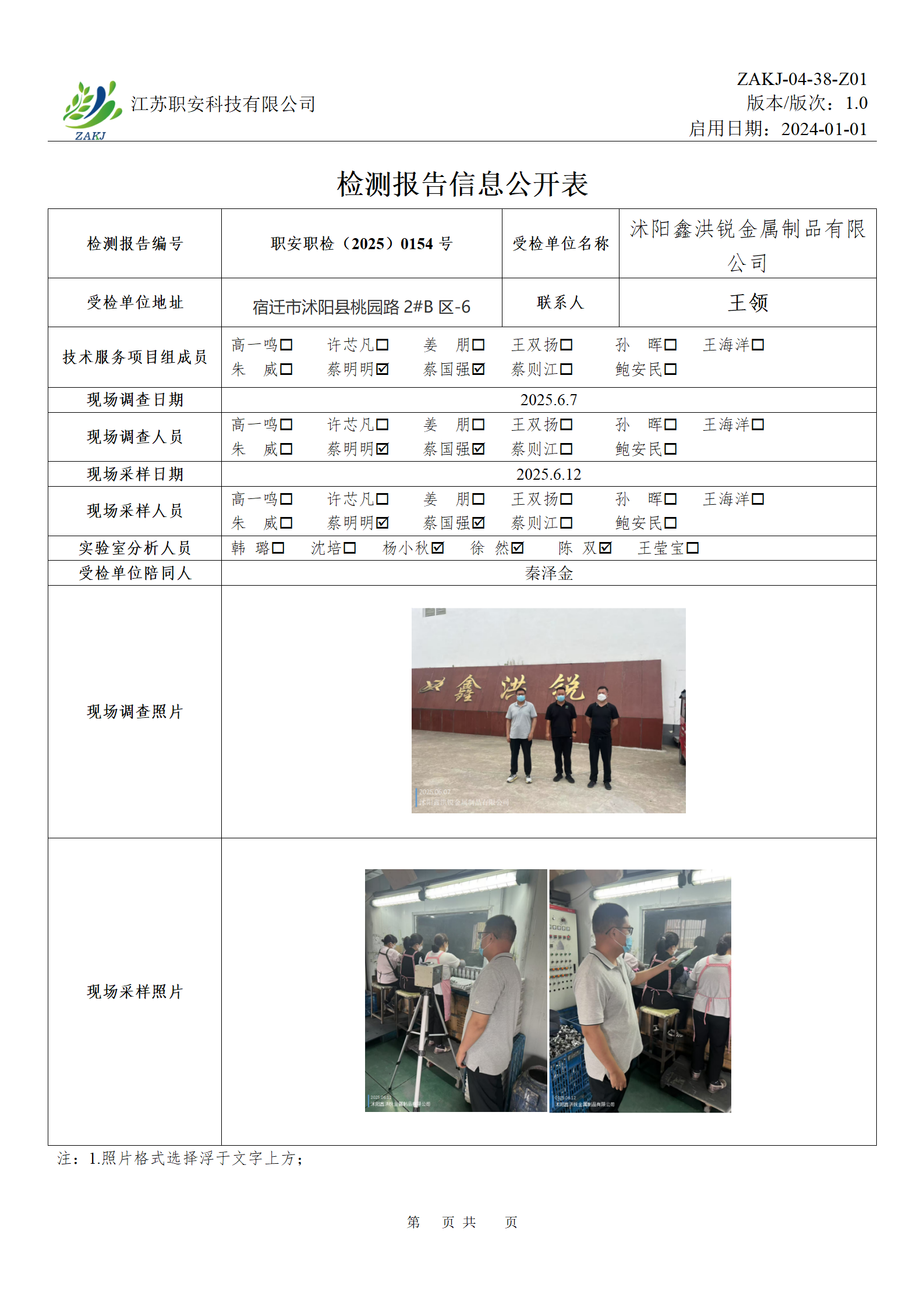 檢測報告公示