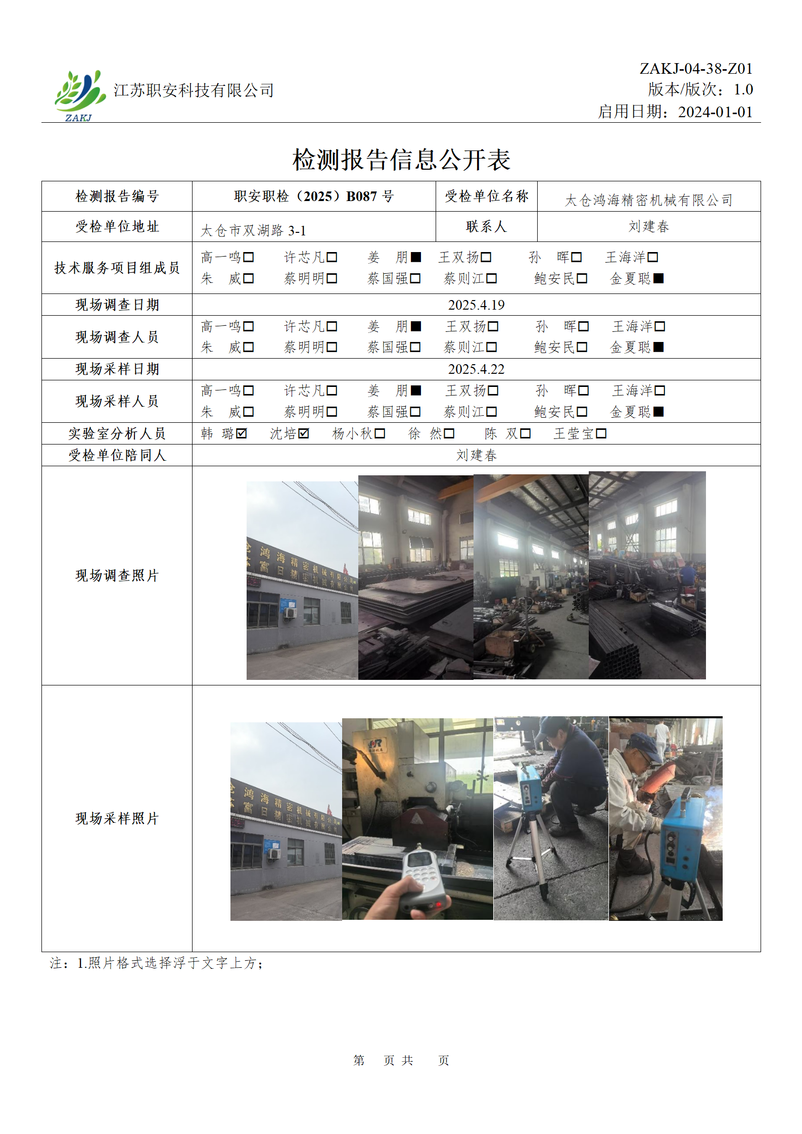 檢測報告公示