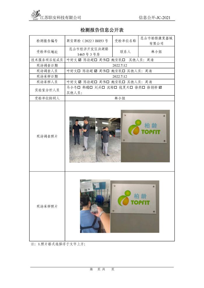 檢測報告公示